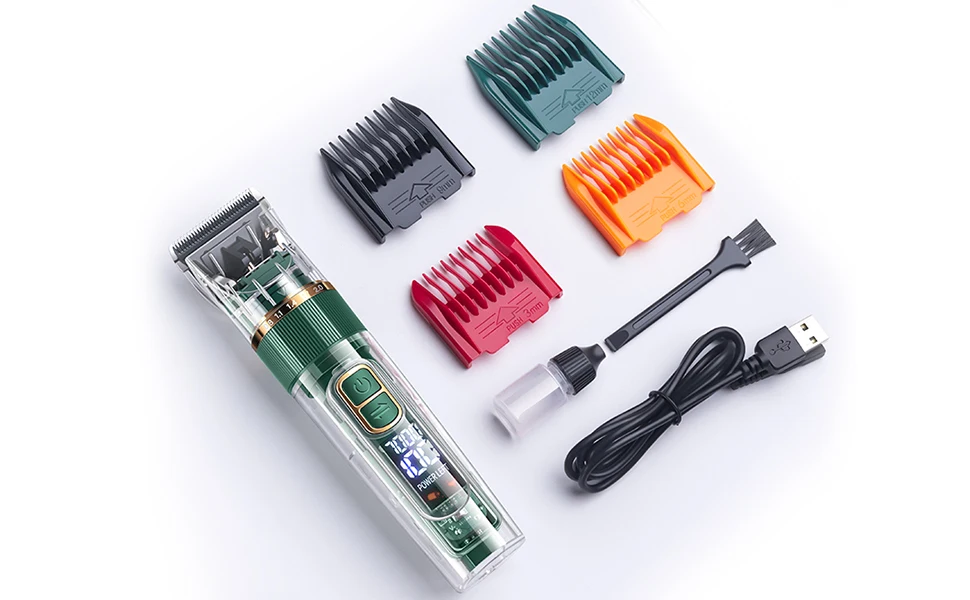 ▶Diseño◀Todo el cuerpo del recortador de pelo para mascotas se puede lavar directamente y está equipado con un cepillo de limpieza dedicado. Puede limpiar rápida y fácilmente las cuchillas del recortador de pelo para perros.
