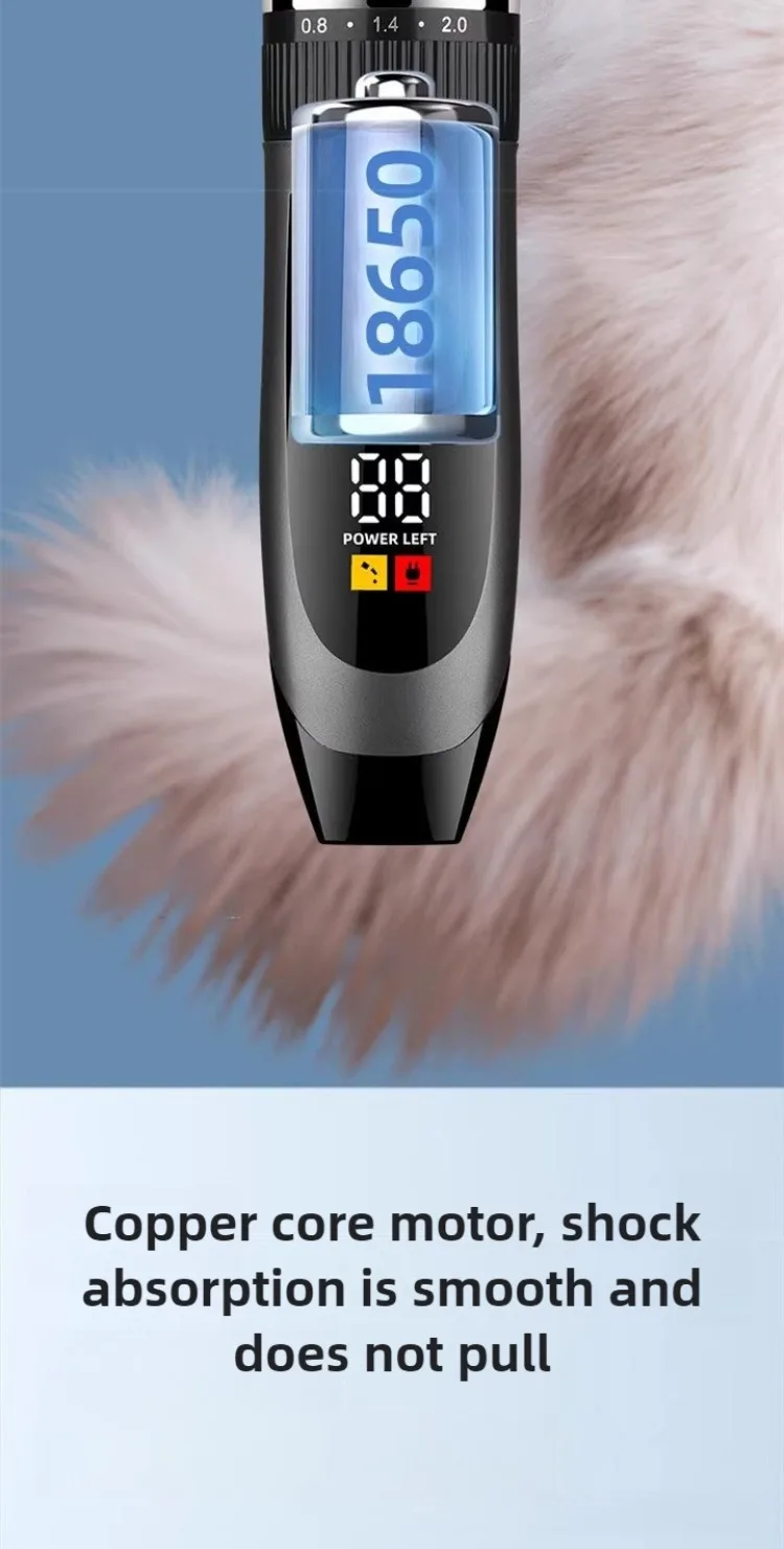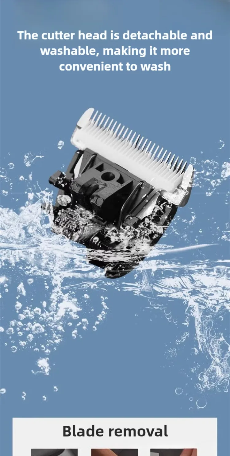 descripción: (1) Pantalla de alimentación LED---- visualización de la potencia restante (2) Lavar el cabezal del cuchillo con agua.---- mantenerlo limpio e higiénico (3) doble uso (enchufable y recargable)---- cableado + inalámbrico (4) Ajuste fino del cabezal de corte de cinco velocidades---- La longitud se controla con una mano. (5) Cabezal cortador de cerámica---- cuanto más afilado es (6) Batería de larga duración ---- carga rápida de una hora