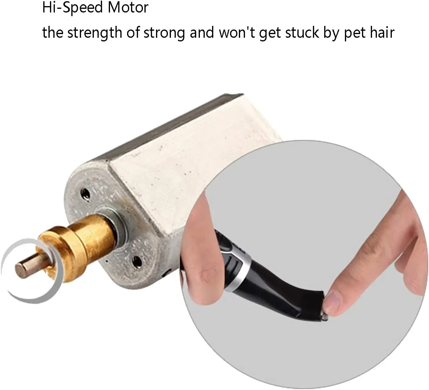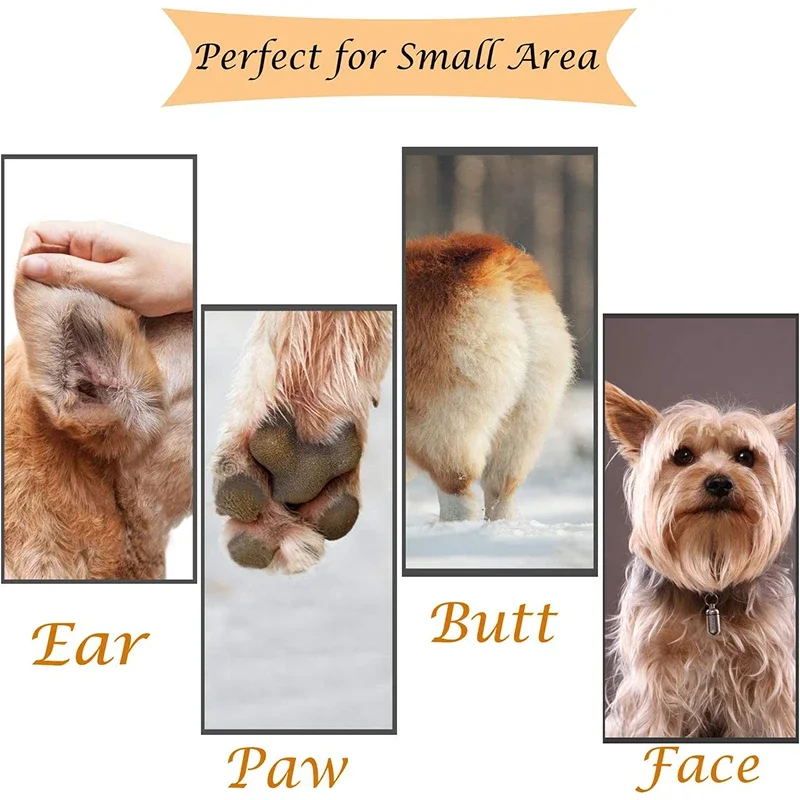 El cabezal de corte estrecho está hecho de acero inoxidable. Elimina suavemente el pelo de las mascotas de las patas de la cara de las orejas de las mascotas y otras áreas más duras de limpiar.