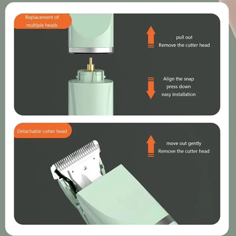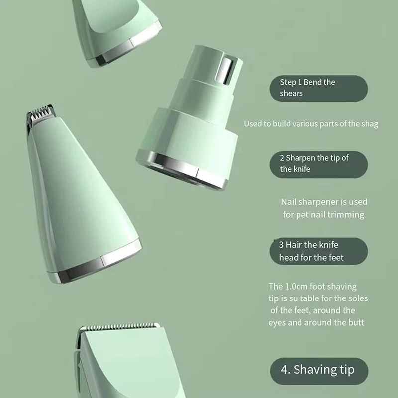 Juego de cuidado de perros 4 en 1: esta tijera para el cuidado de perros viene con 4 cabezales diferentes (cabeza estándar, cabeza estrecha, molinillo de uñas y cabezal detallado), diseñada para todo el cuerpo de mascotas pequeñas y medianas.Se puede adaptar a diferentes partes y a algunas zonas sensibles, como dedos de los pies, orejas, ojos, zona privada, rostro y abdomen.