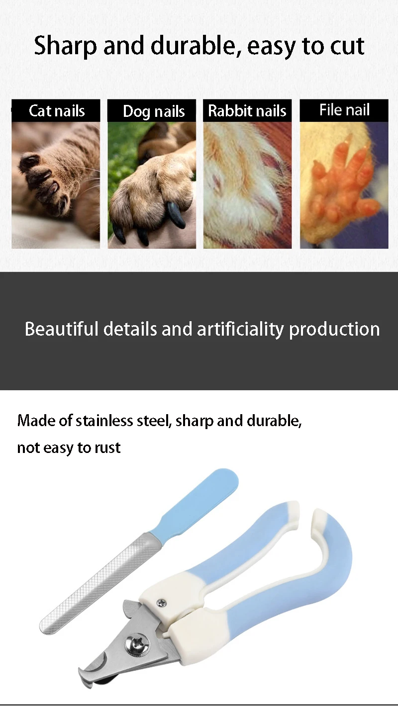 Cortaúñas de garra de acero inoxidable para perros y gatos, cortador de limas, tijeras para perros, cuidado de los dedos, recortador de uñas, SUMINISTROS DE ASEO para mascotas