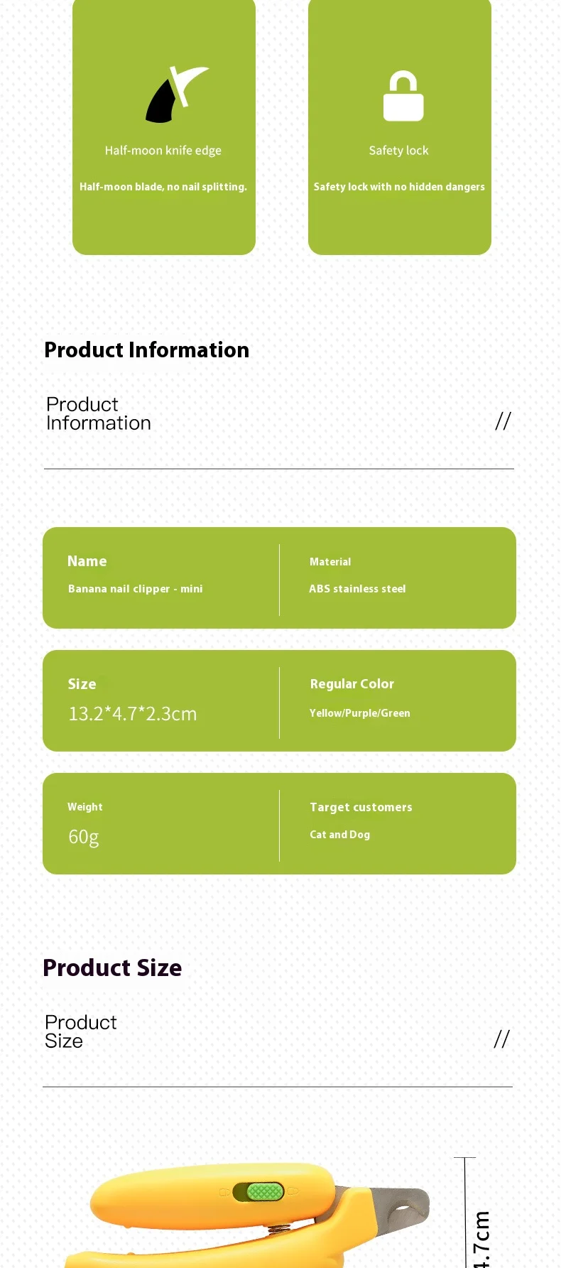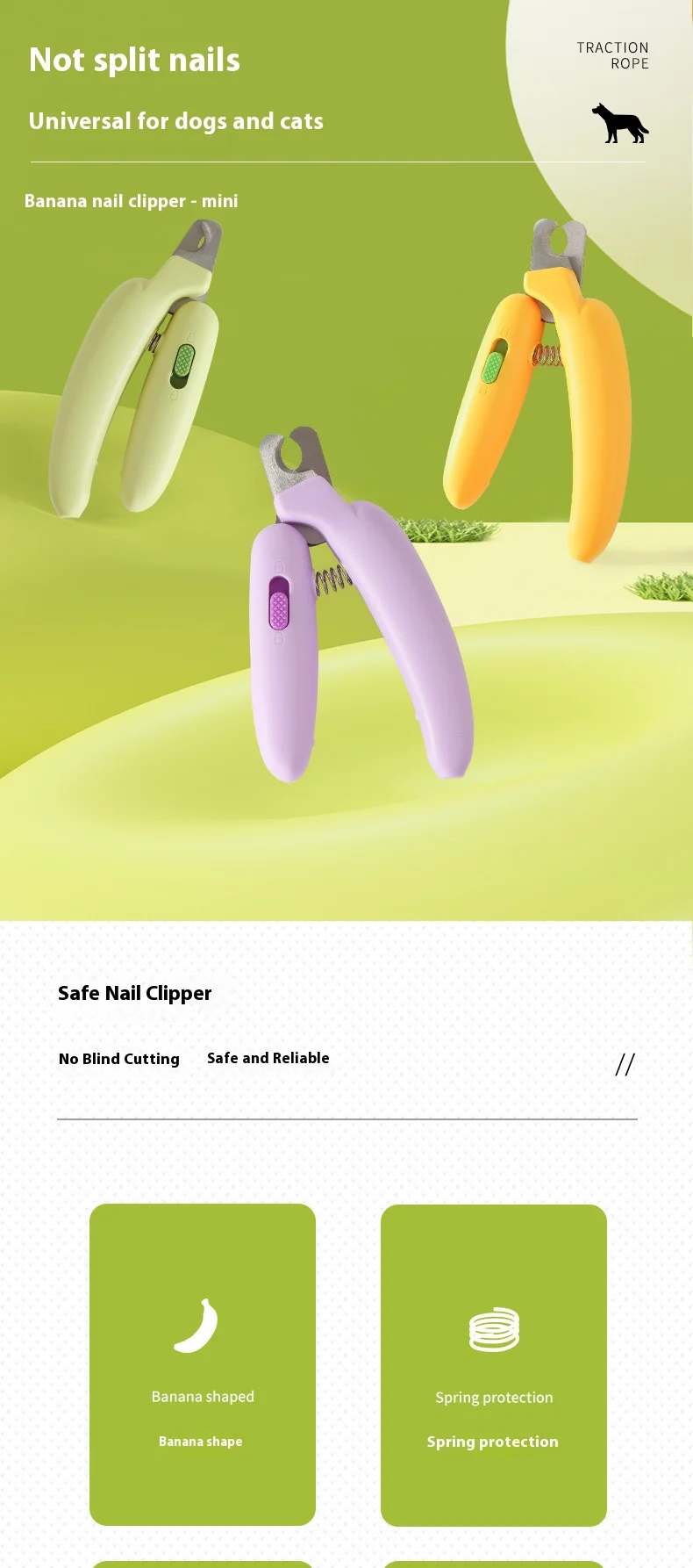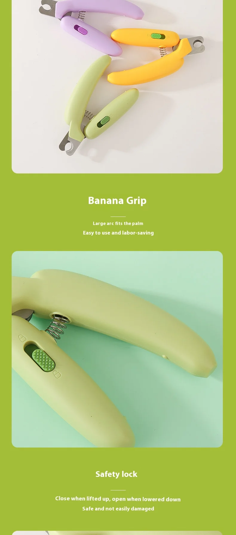 Cortauñas para mascotas con forma de plátano, recortador de uñas seguro para gatos, perros, conejos, mascotas pequeñas, previene el sangrado, herramienta de aseo profesional