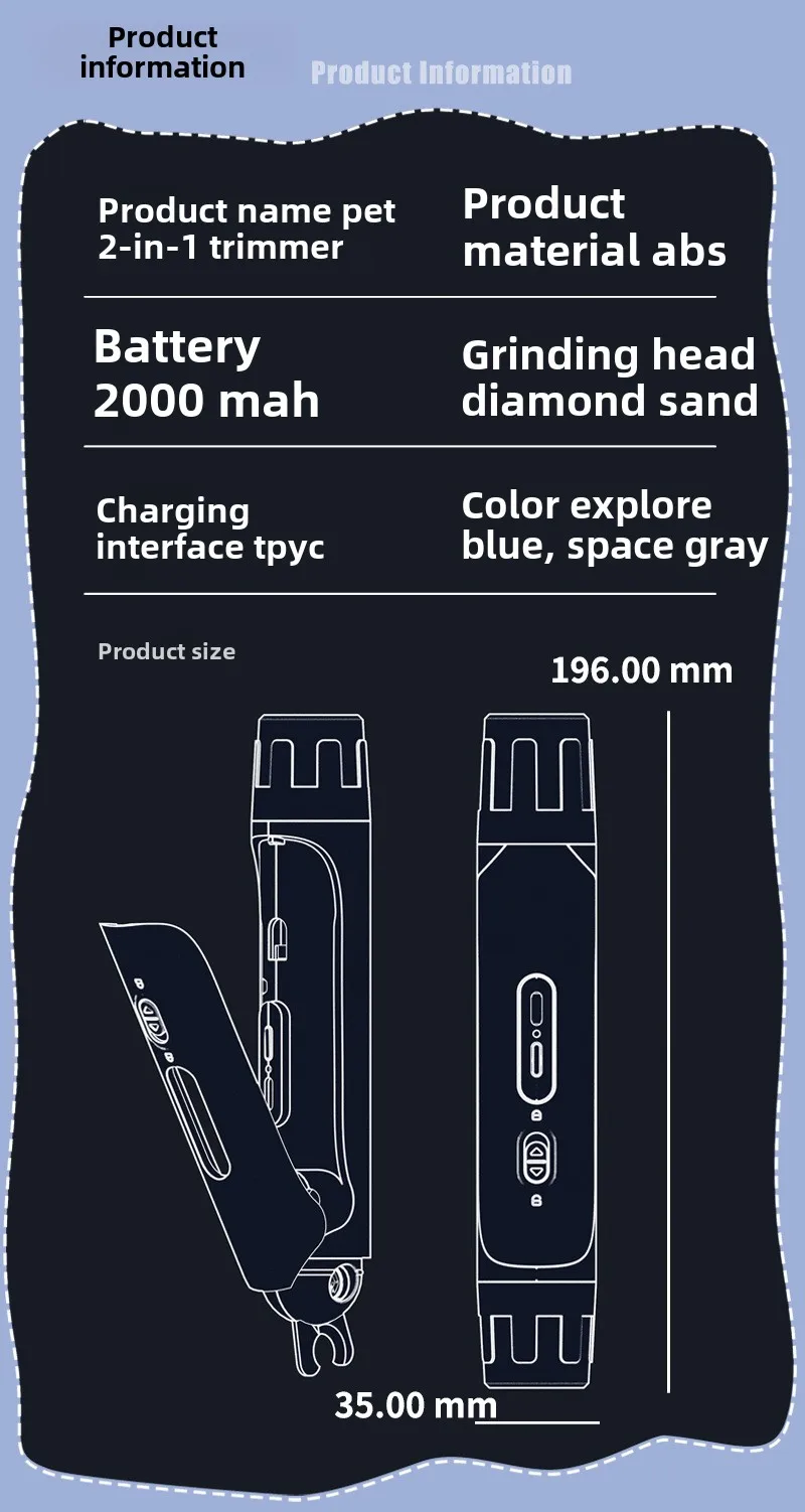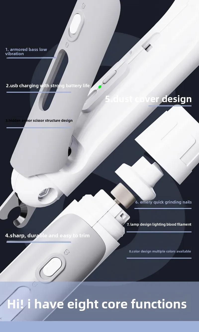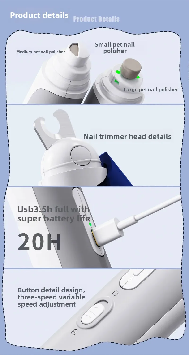 Cortauñas para mascotas, sacapuntas eléctrico para uñas, juego 2 en 1, cortaúñas para perros y gatos, suministros de limpieza, productos para mascotas