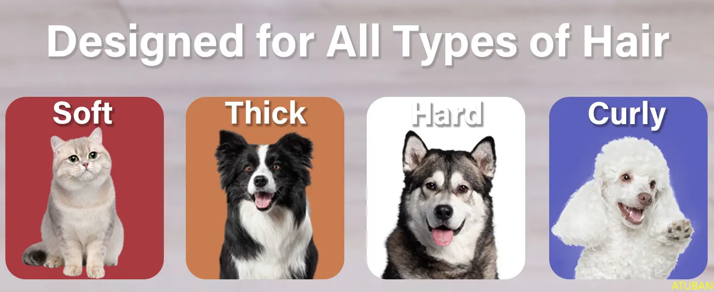 Los kits de aseo para perros de ATUBAN están diseñados con esquinas redondeadas, que no pincharán la piel de su mascota. Los peines protectores (peines de límite) que proporcionamos son más útiles para permitir a los clientes elegir la longitud del afeitado.