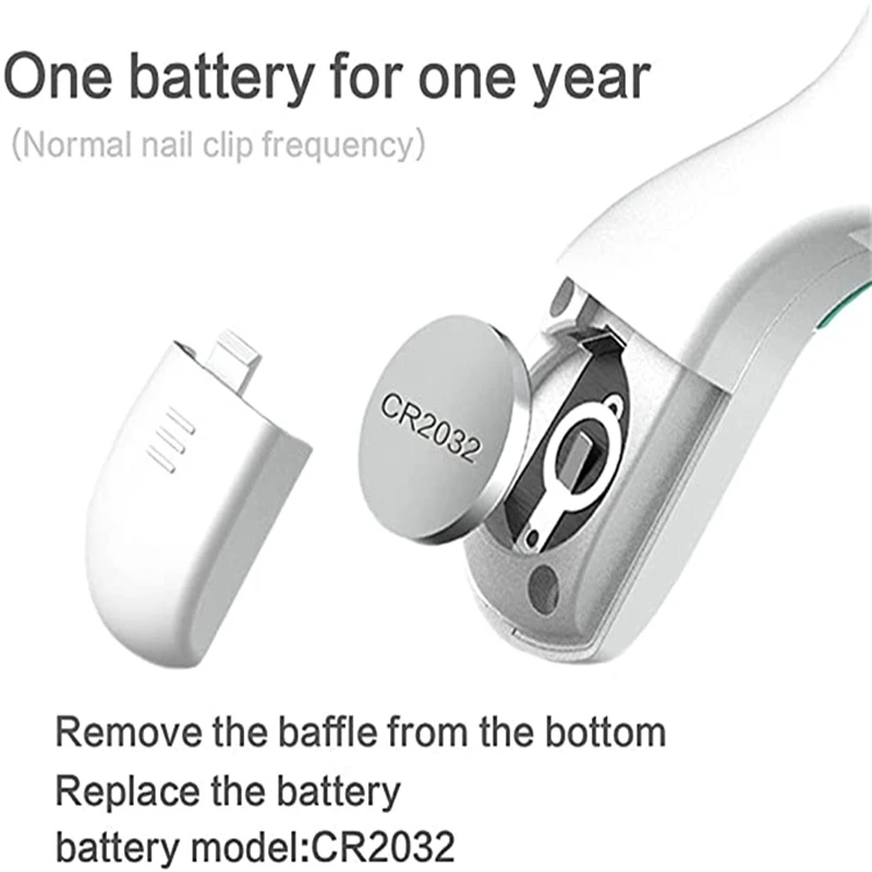 Batería CR2032, una batería se puede utilizar durante un año de acuerdo con la frecuencia normal de corte de uñas.
