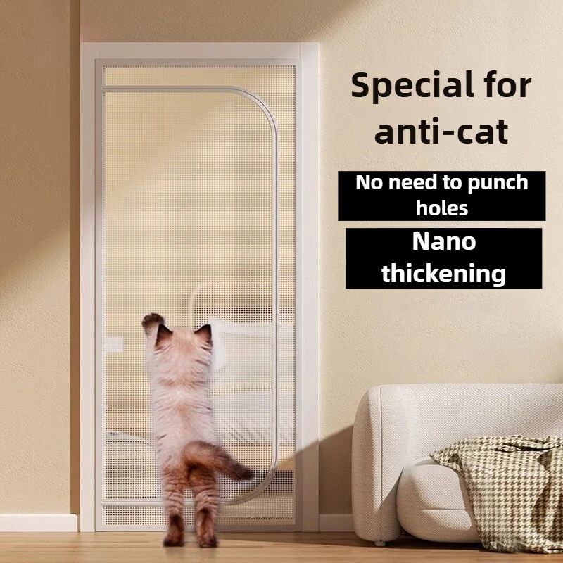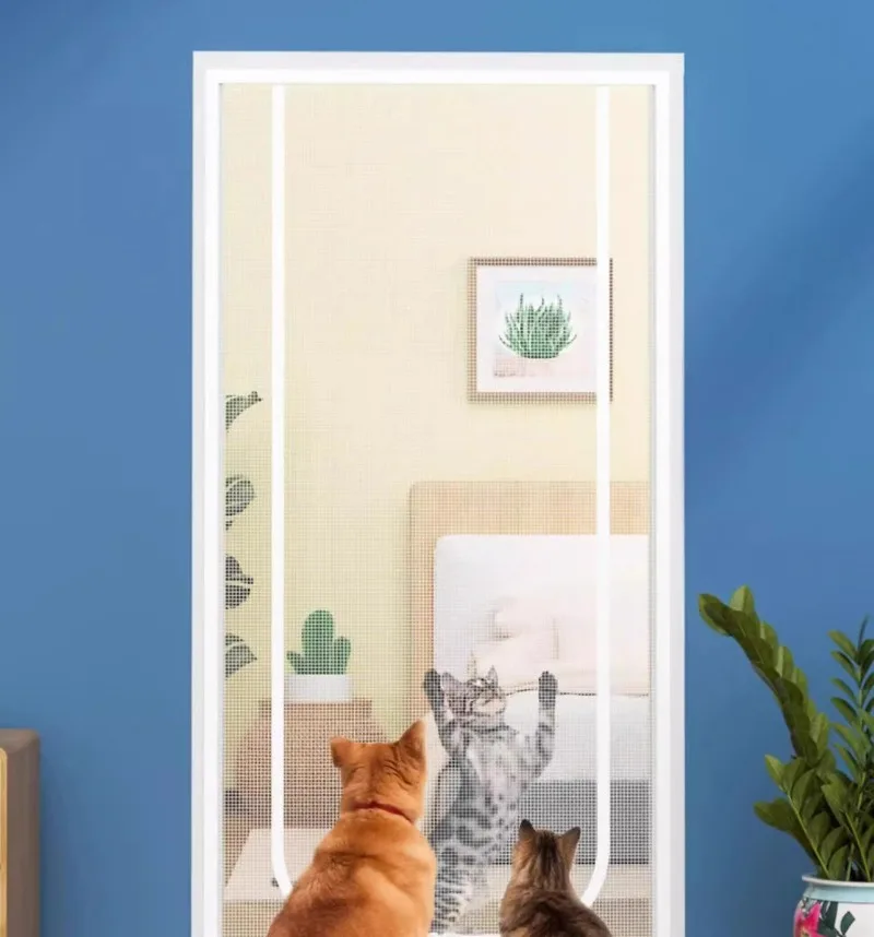 Cortinas de puerta antigatos de malla para evitar que los perros corriendo, pantallas de puerta, partición de pantalla de ventilación para sala de estar, cortinas para mascotas con cremalleras