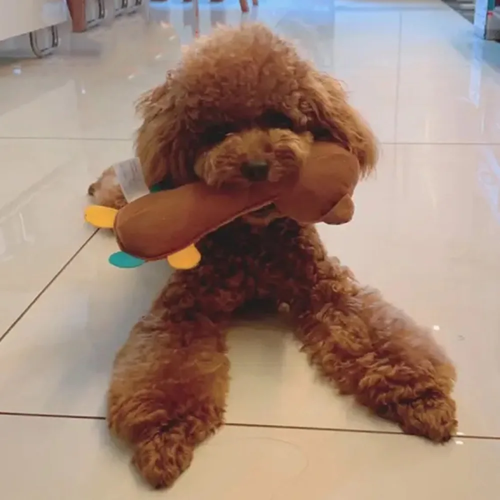 This plush squeaky puppy dog toy is designed to clean your pet's teeth while they play, promoting oral health.