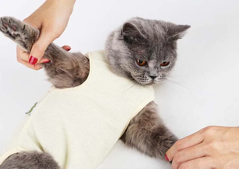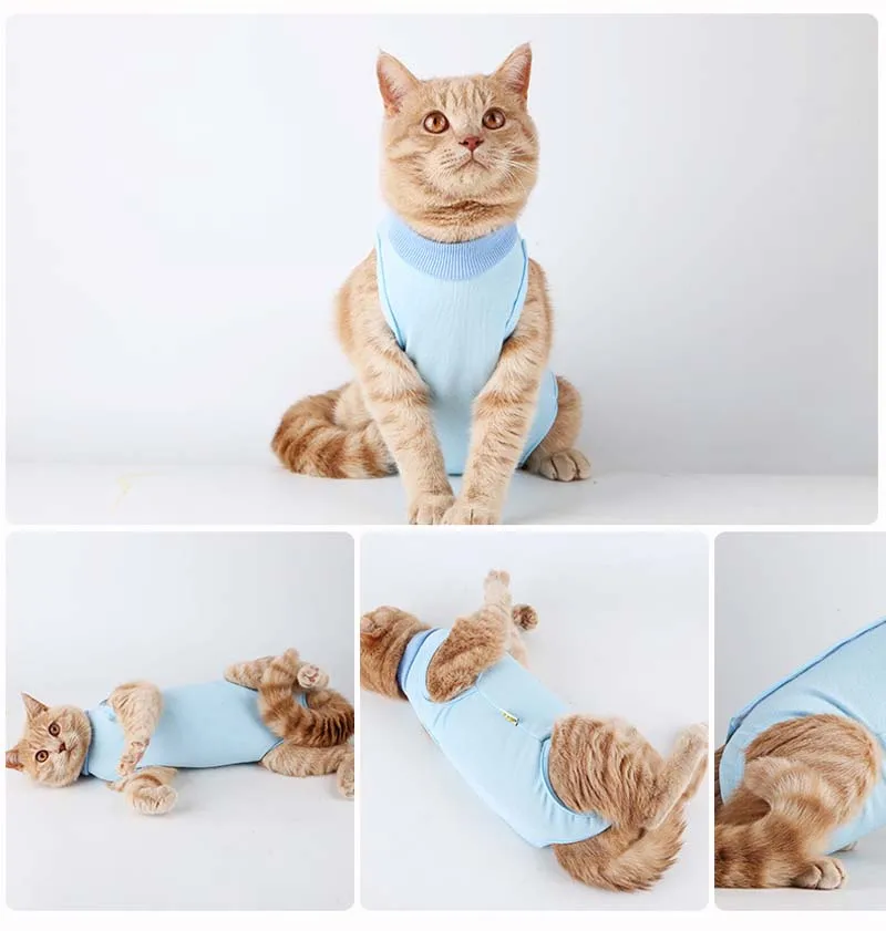 Ropa de algodón para rehabilitación de Cirugía de mascotas, ropa postoperatoria para gatos, traje de protección de recuperación para gatos, chaleco para gatitos, accesorios para gatos10A