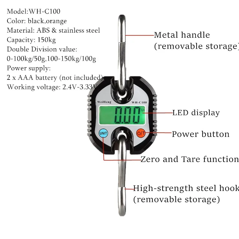 Double Division value: 0-100kg/50g,100-150kg/100g