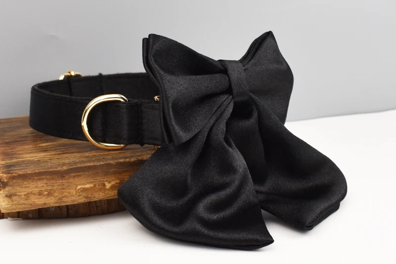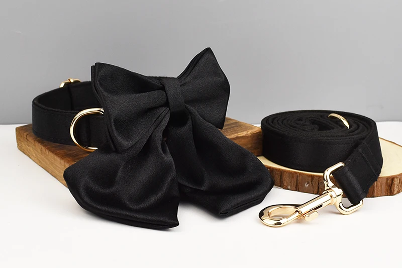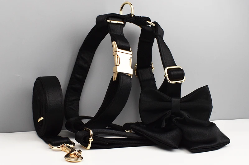 Accesorios para mascotas Logotipo de diseñador personalizado Collar de perro de poliéster sedoso de lujo Correas Arnés Arco Set Fabricantes Crystal03
