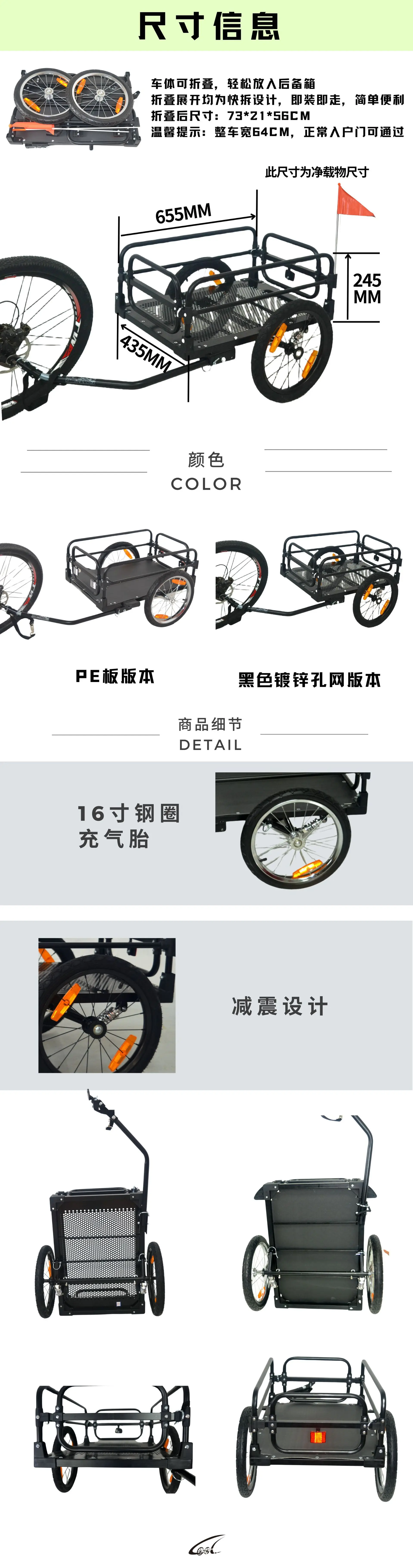 CTS41 Remolque de bicicleta para mascotas, artículos simples, viajes al aire libre, implementación diaria, remolque de bicicleta