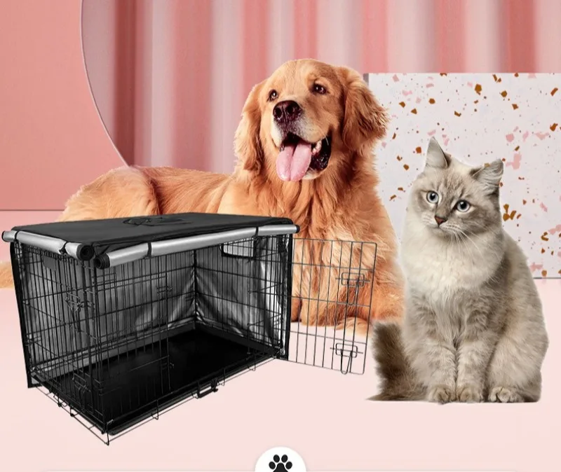 Cubierta impermeable para jaula de perrera para perros, tela Oxford a prueba de viento, cubiertas para perrera grande para perros, suministros portátiles plegables a prueba de sol para mascotas