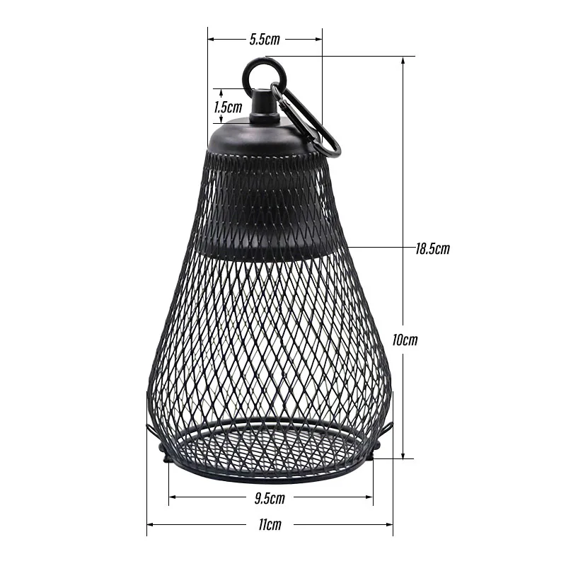 Práctico volumen pequeño: reduce el volumen inútil para el impacto visual, el tamaño completo de la jaula es de 10,5 cm (alto) * 7 cm (diámetro), 100 vatios reales de calor, podría durar 10,000 horas, incluso más