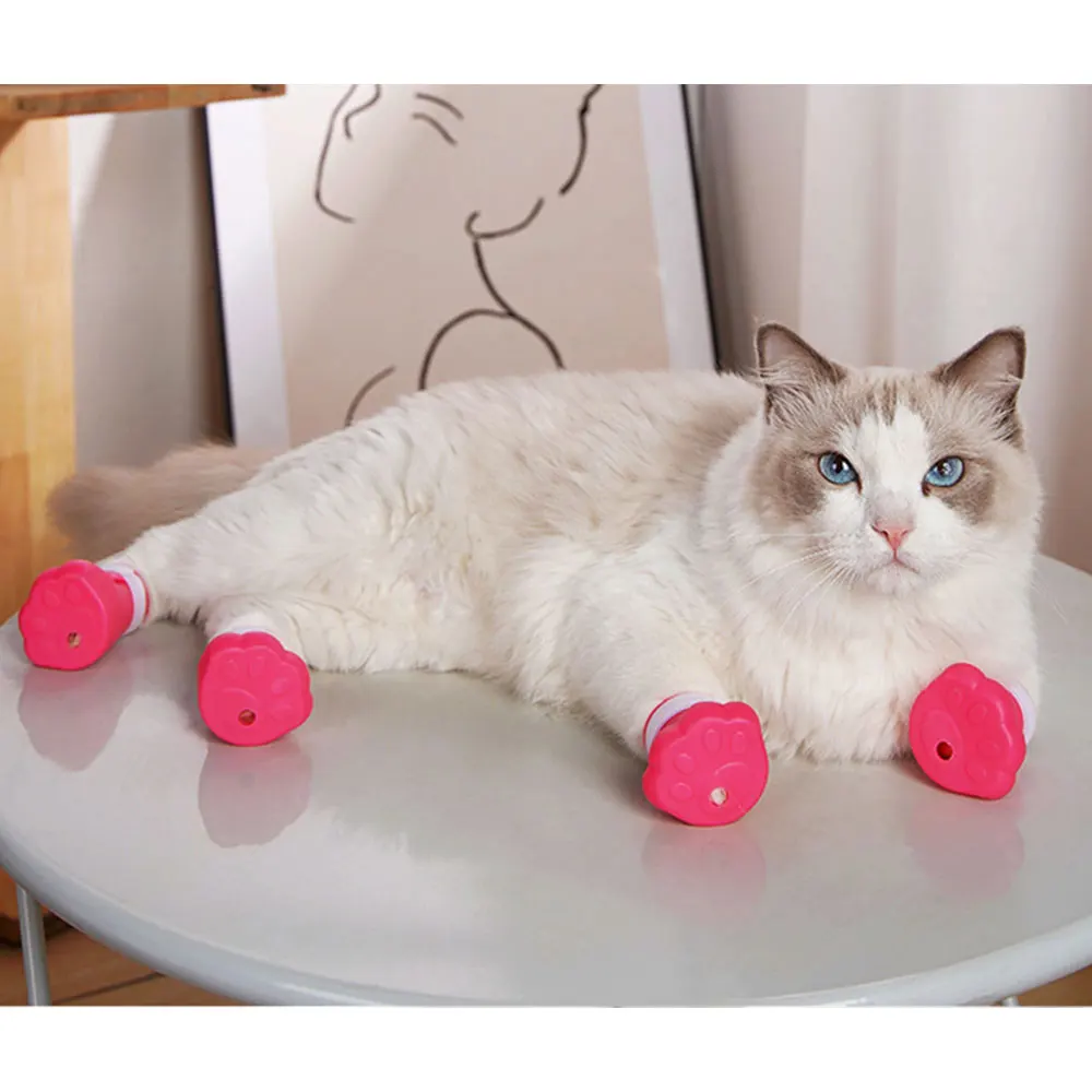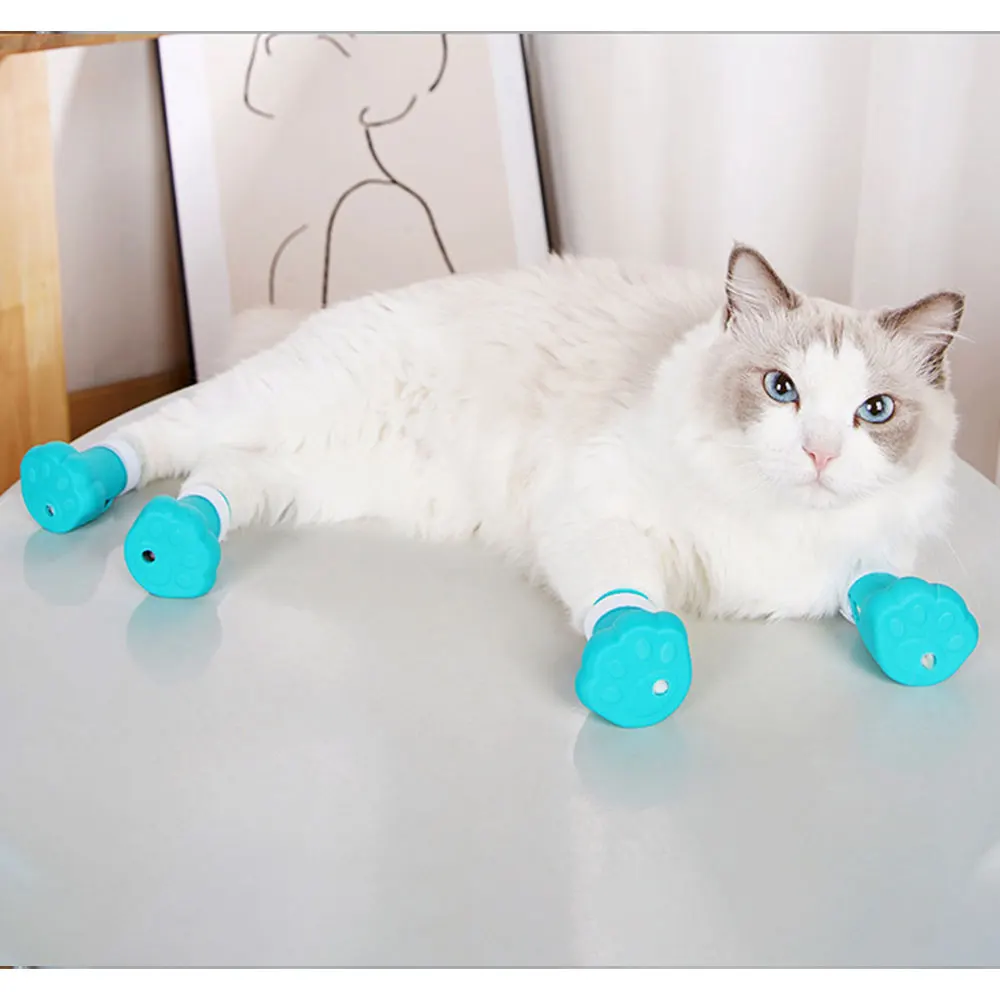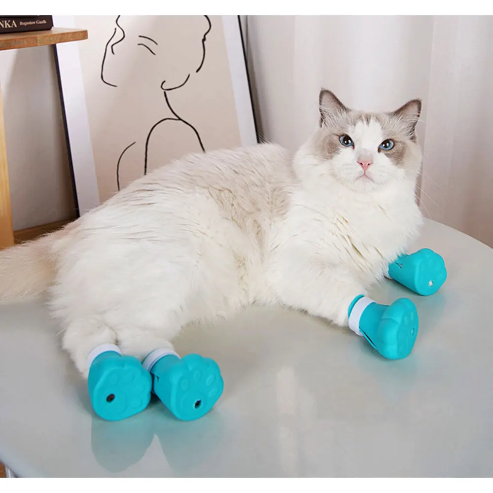 4 Uds. Cubiertas antiarañazos para pies de gato, zapatos antiapagado ajustables para gato, botas protectoras de silicona para patas de gato para baño de gato, suministros para mascotas