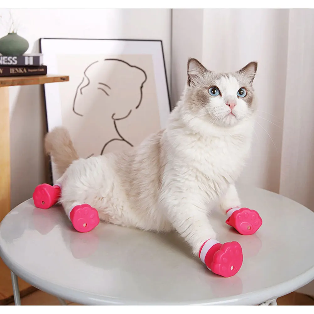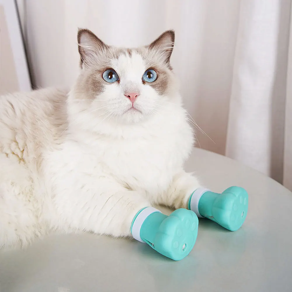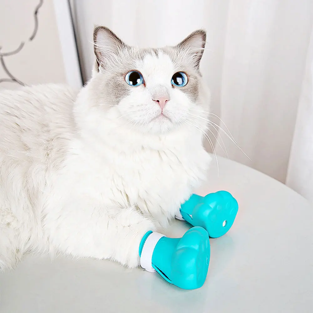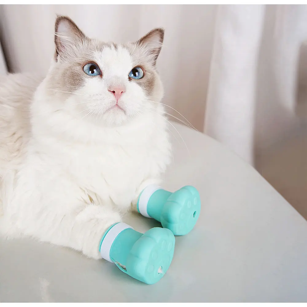 4 Uds. Cubiertas antiarañazos para pies de gato, zapatos antiapagado ajustables para gato, botas protectoras de silicona para patas de gato para baño de gato, suministros para mascotas