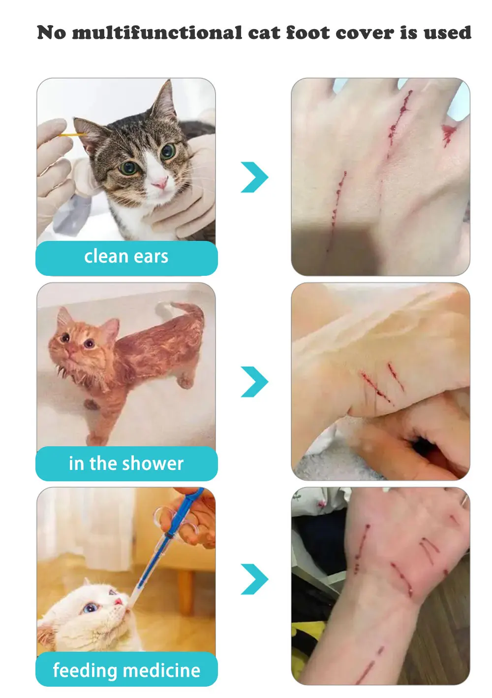 Protección de seguridad: las botas protectoras pueden envolver las patas del gato, para que puedas bañar, inyectar, dar medicamentos y afeitarte a tu gato sin preocupaciones.