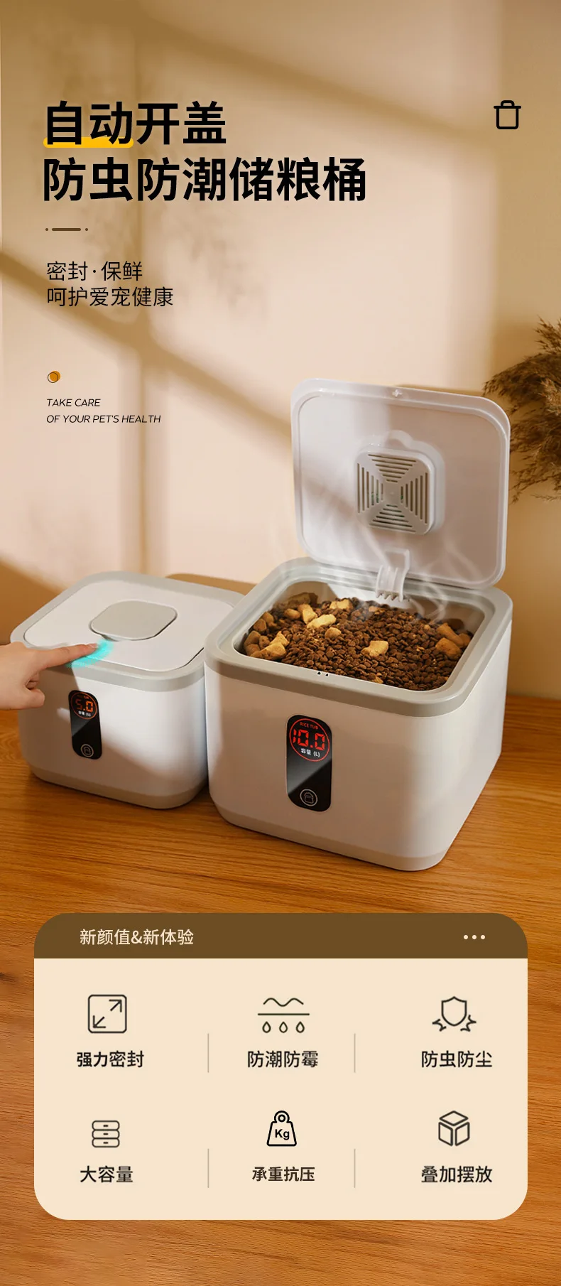 Cubo de almacenamiento de alimentos para mascotas, cubo de comida japonés Simple sellado para perros y gatos, almacenamiento de aperitivos de gran capacidad, suministros de tanque sellado