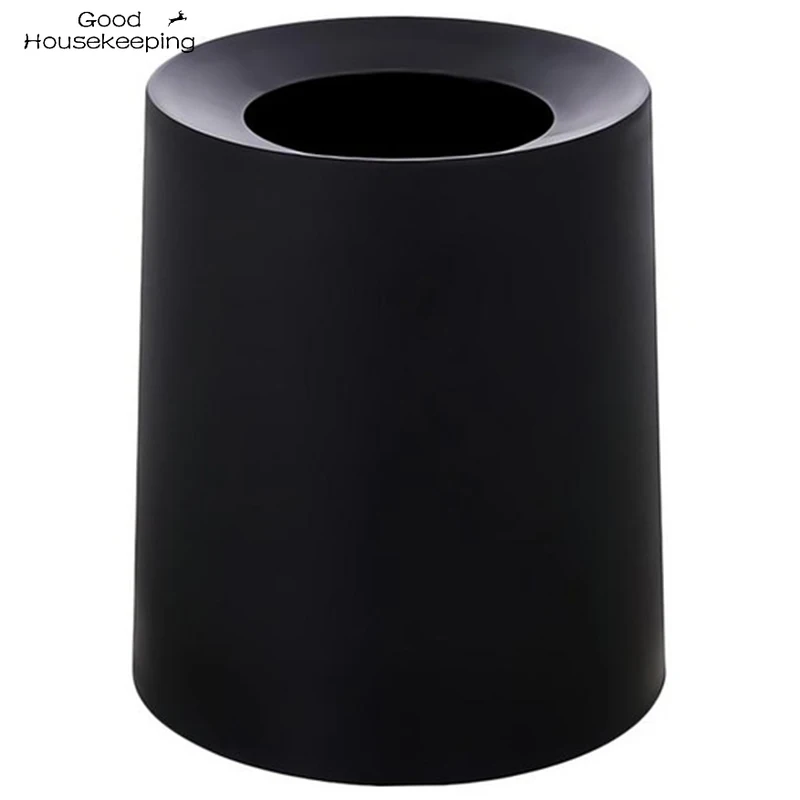 Cubo de basura redondo de doble capa para el hogar, oficina, sala de estar, cocina, baño, cubo de basura de doble capa, cubos de basura sin tapa, negro