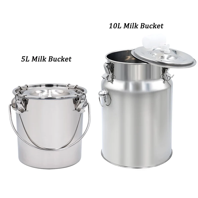 Cubo de leche de vaca de acero inoxidable de 5/10L, cubos de granja, cabras, bomba de vacío, pastura, oveja, ordeño eléctrico, accesorios para máquina