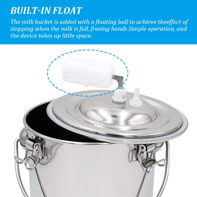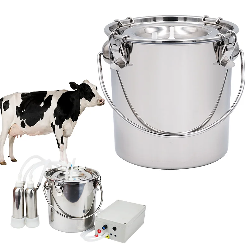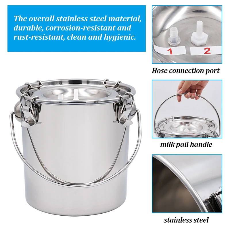 Cubo de leche de vaca de acero inoxidable de 5L, bomba de vacío para granja, vacas, cabras, pastos, vacas, ovejas, accesorios eléctricos para máquina de ordeño