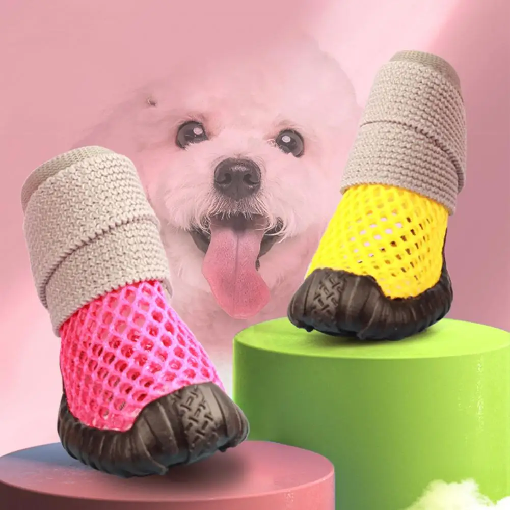 Este zapato para mascotas no solo viene con una parte inferior antideslizante y un diseño impermeable elevado, este zapato para mascotas está ahuecado Para transpirar y no sofocará el sudor.