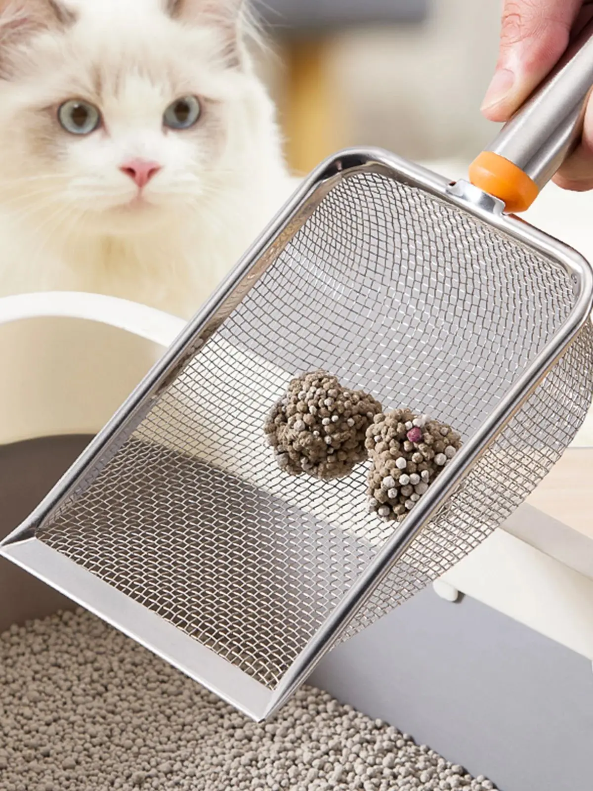 Buena pala para arena de gato. El tamaño podría ser un poco más pequeño, pero de todos modos es muy útil.
