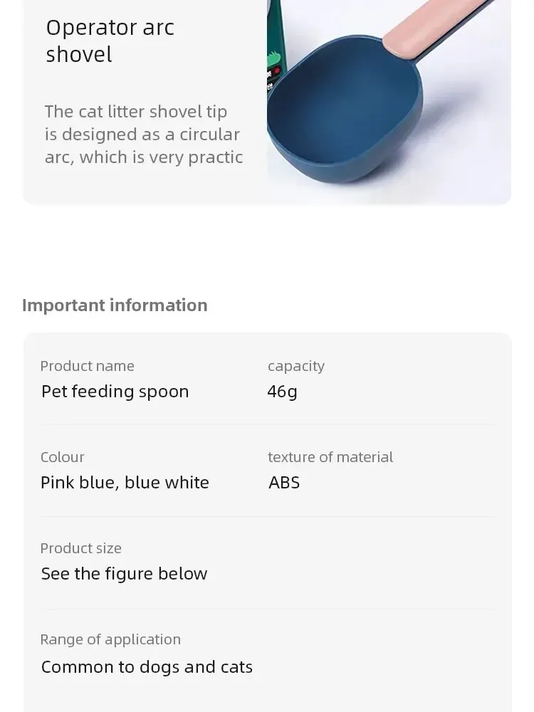 - Las cucharas de comida para perros están hechas de material plástico ABS de alta resistencia y tenacidad, pueden ser fáciles de entrar en contacto con los alimentos y fáciles de usar.