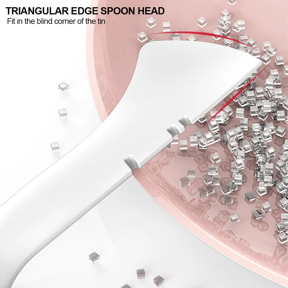 La pala tiene una cabeza en forma curva, puede fijar muy bien la lata en el interior y puede sacar los alimentos fácilmente.