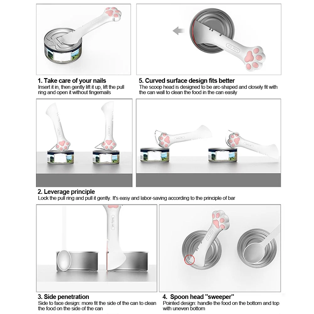 Práctica pala de comida enlatada para mascotas, con función de abrelatas.