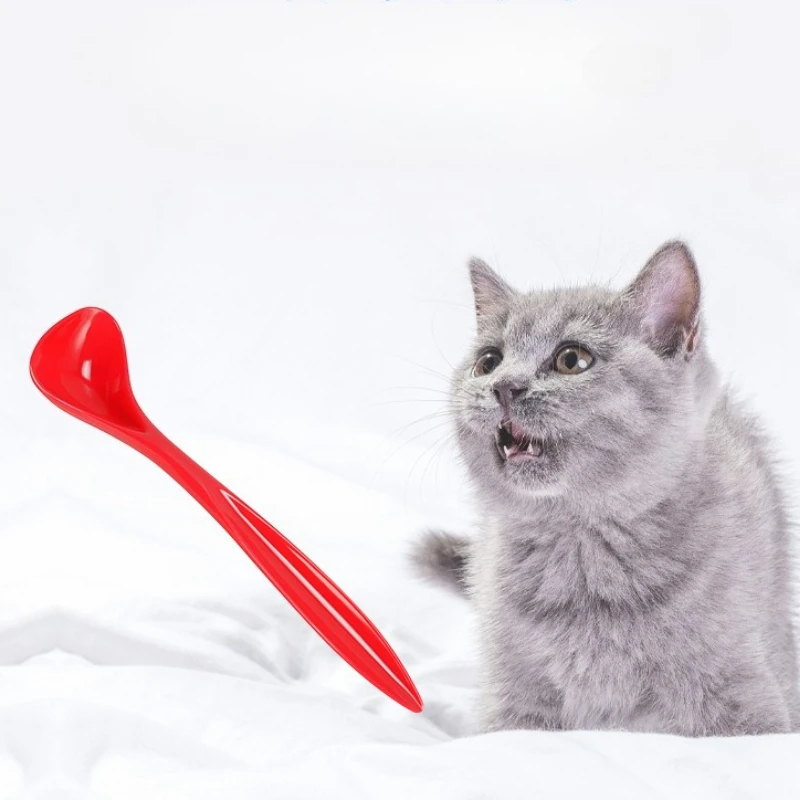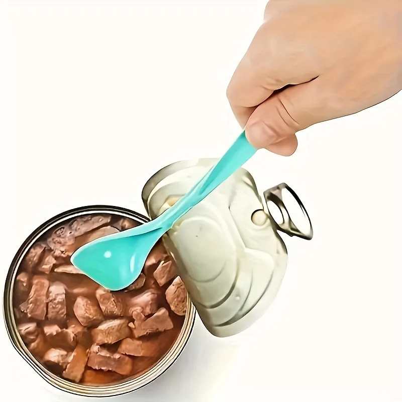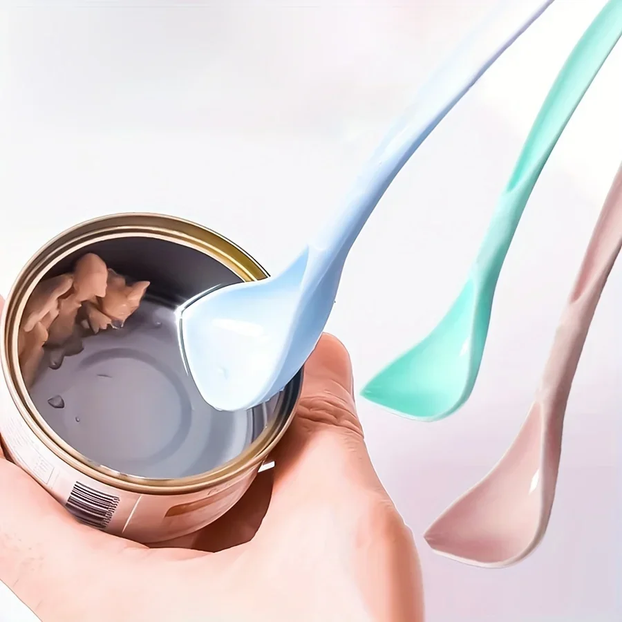 Cucharas enlatadas de plástico para comida para mascotas, cucharas mezcladas para gatos con mango largo y diseño curvo, accesorios de alimentación duraderos