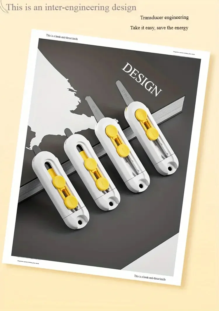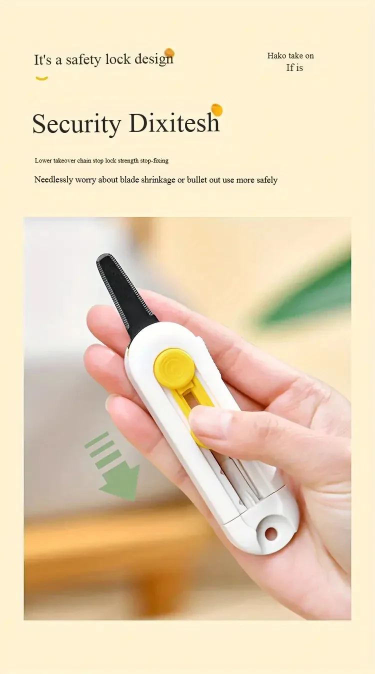 Fácil de usar: la longitud de la hoja del lindo cortador de caja se puede ajustar fácilmente deslizando el botón hacia adelante y hacia atrás.Cuando no esté en uso, oculte la hoja del cuchillo deslizándola hacia atrás hacia adentro para evitar lesiones accidentales.