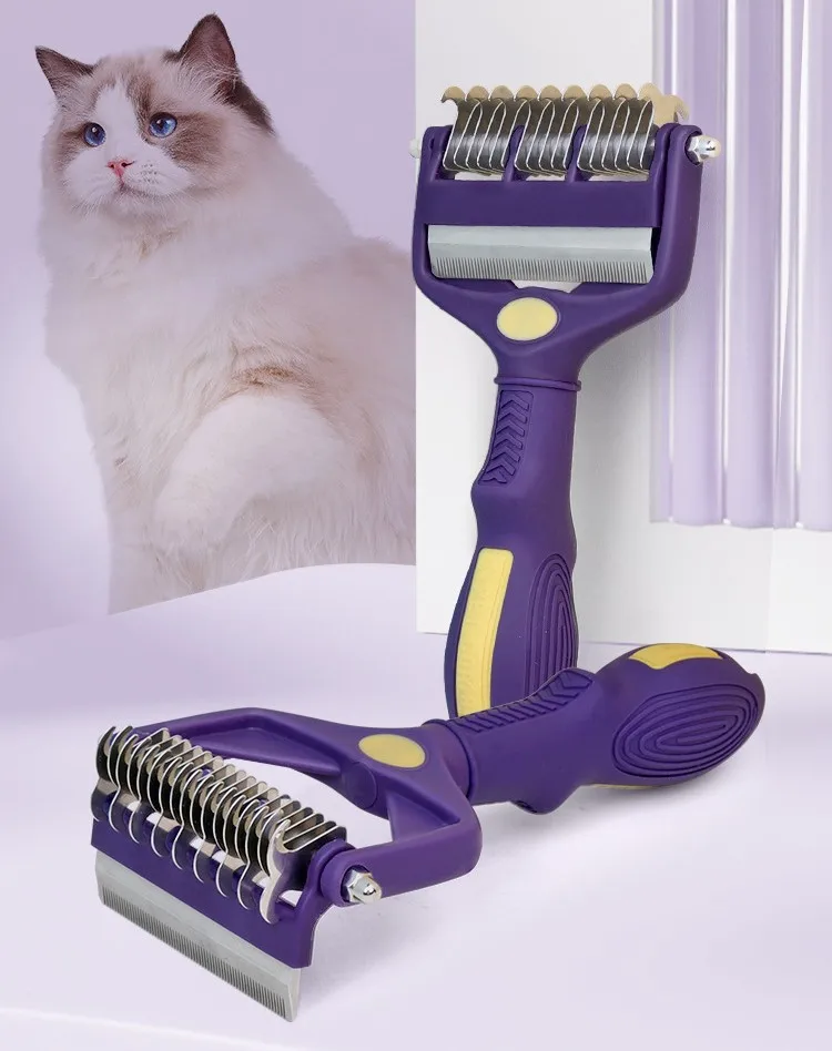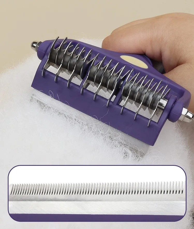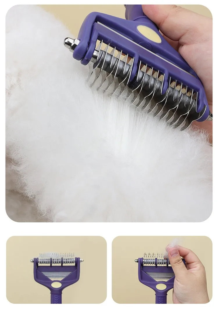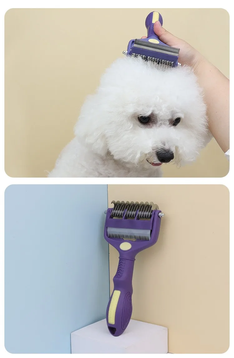 Cuchillo cepillo para perros, peine para perros, peines de doble cara para perros, apertura de nudos para el pelo, cepillo para perros, cuchillo plegable, removedor de pelo para mascotas