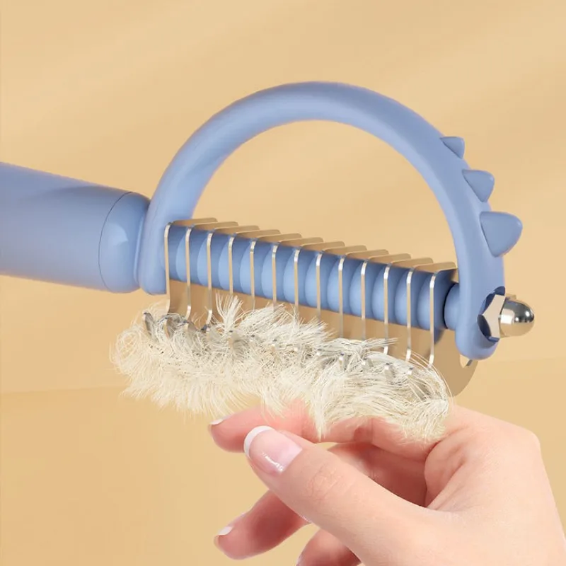 Cuchillo de Peine de doble cara para perros, cepillo de acero inoxidable para quitar el pelo de mascotas
