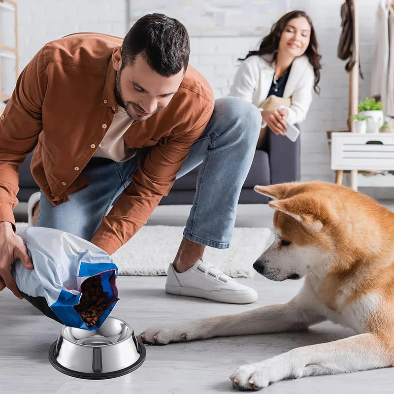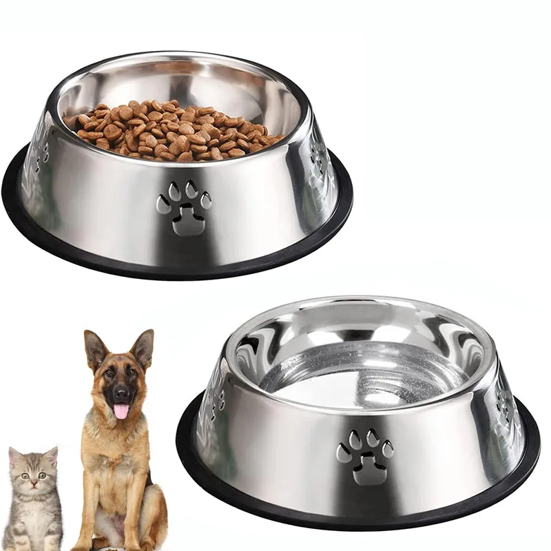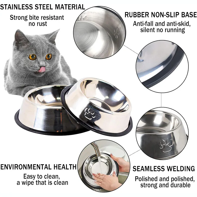 Cuenco de acero inoxidable con Base de goma para perros y gatos, comedero para mascotas y cuencos de agua, plato antideslizante apilable para cachorros para animales pequeños y medianos