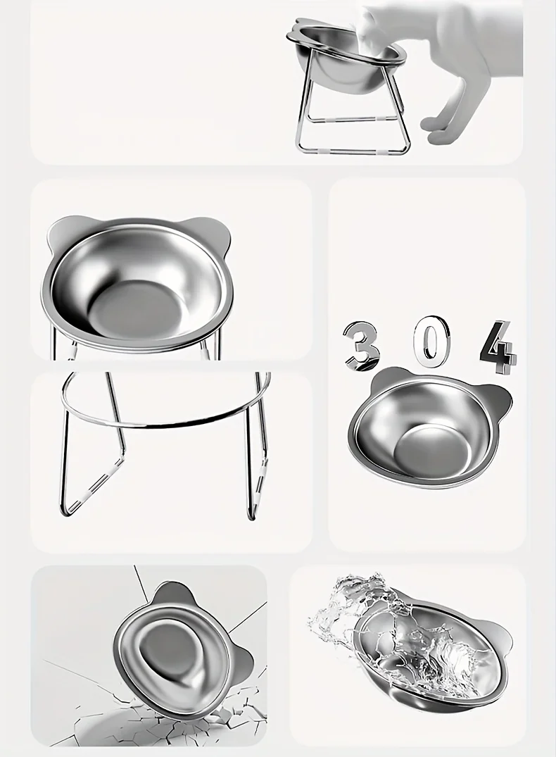 Cuenco de acero inoxidable para gatos, alimentador elevado para gatos, protección para el cuello, cuenco antiasfixia para mascotas, accesorios para perros pequeños y gatos