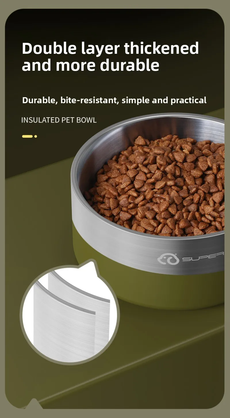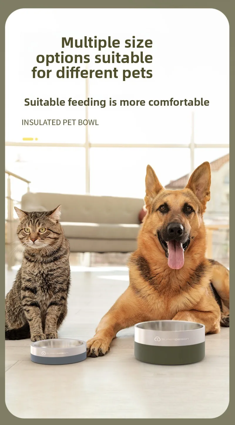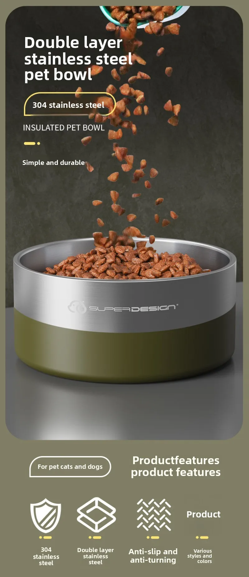 Cuenco de acero inoxidable para mascotas, gatos, perros, agua potable, alimentación, evita resbalones, doble capa, evita golpes, productos para mascotas fáciles de limpiar