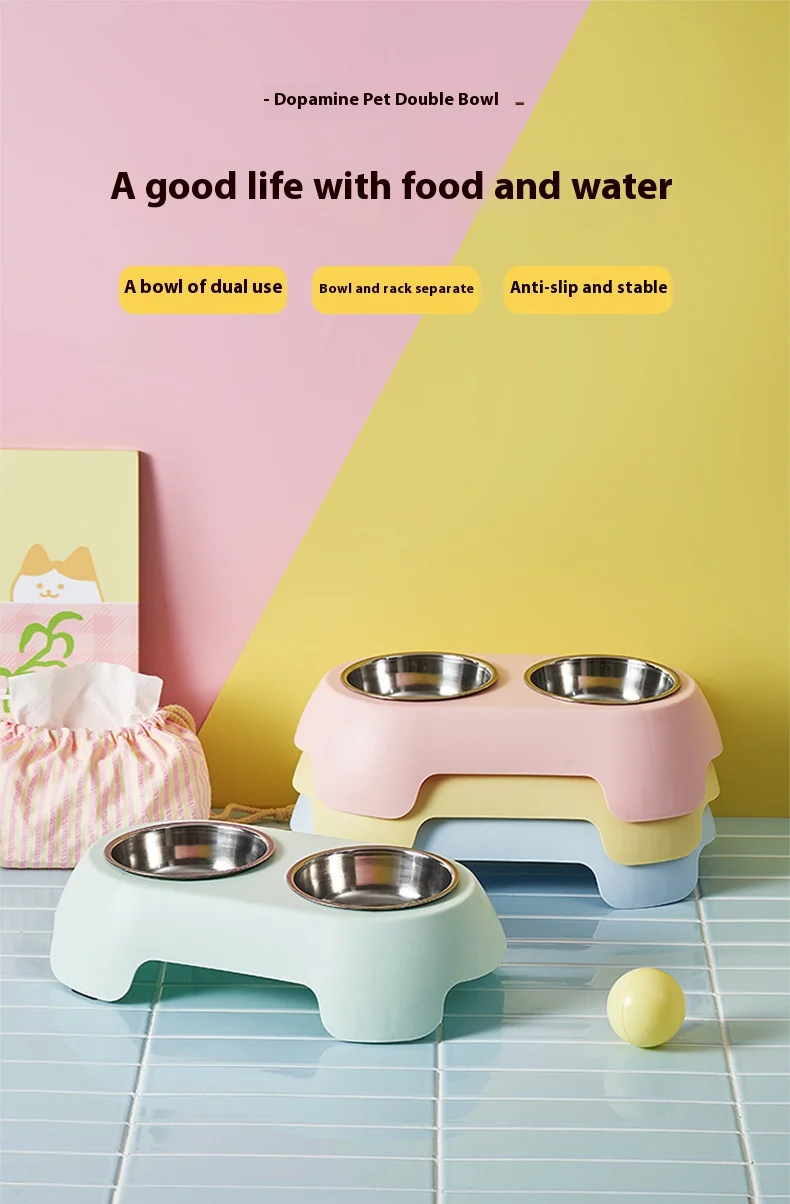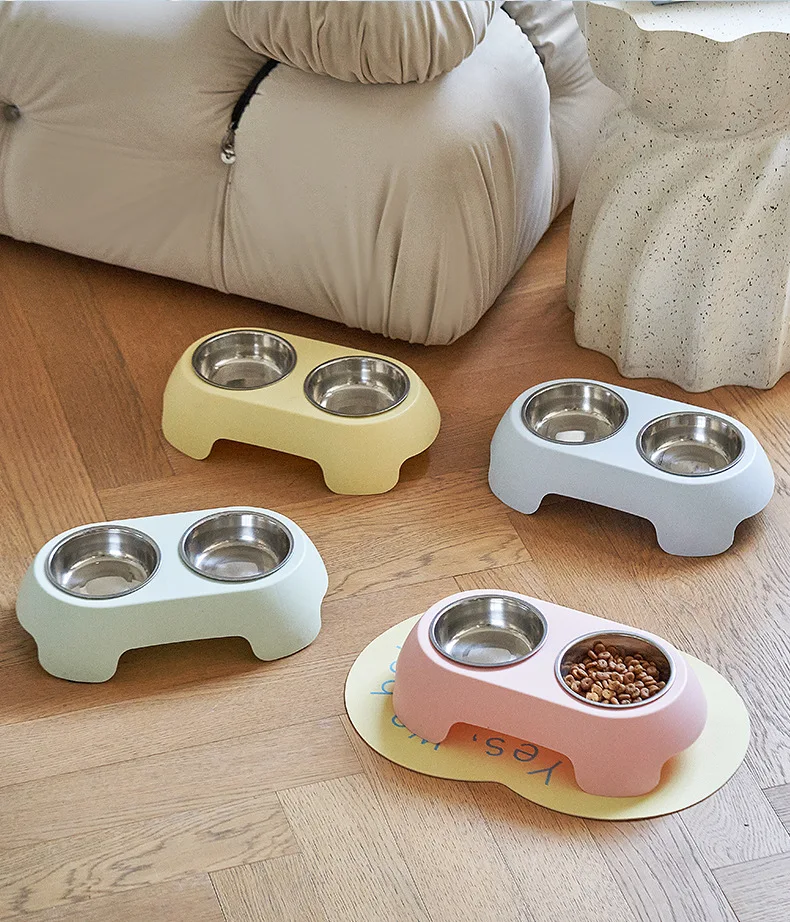Cuenco de acero inoxidable para mascotas, juego de platos dobles, antideslizante, antipunta, gran capacidad, cuenco alimentador de agua para comida para perros y gatos para mascotas
