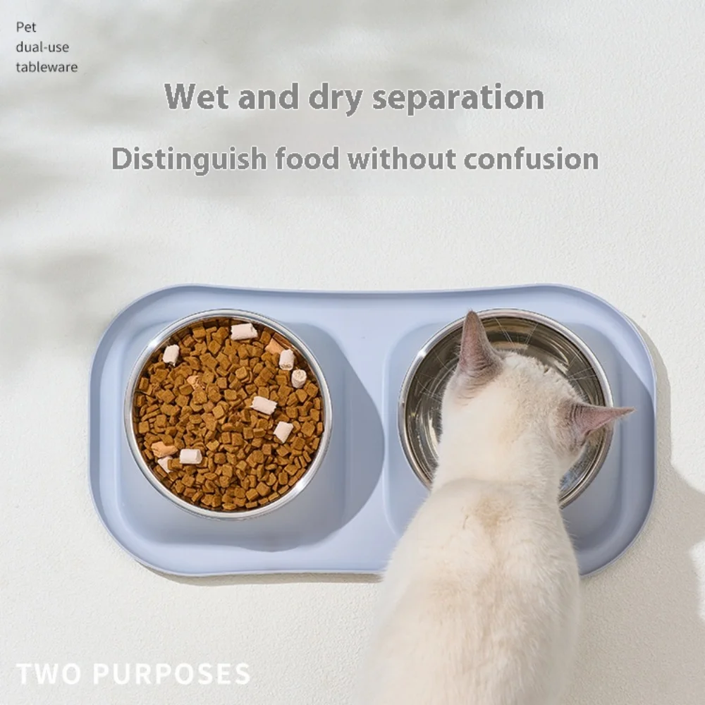 Cuenco de acero inoxidable resistente para mascotas, alimentador lento antiderrames para gatos y perros, cuenco doble individual sin punta, juego de comedor para mascotas a prueba de herrumbre