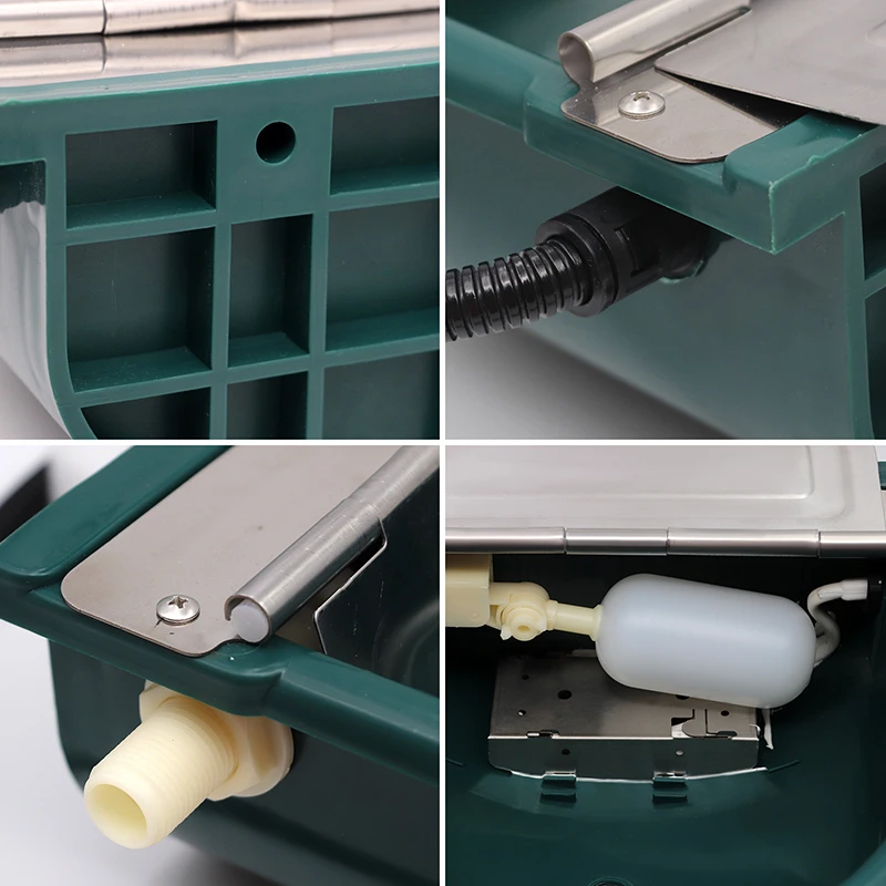 4. El cuenco de agua automático puede reponer y cortar el agua automáticamente a través de la válvula de flotador. La válvula de flotador de plástico es ligera y puede detectar con precisión los cambios en el nivel del agua. Cuando el nivel del agua sube a la línea horizontal, la fuente de agua se corta, y cuando el nivel del agua baja, el agua se agrega a tiempo.