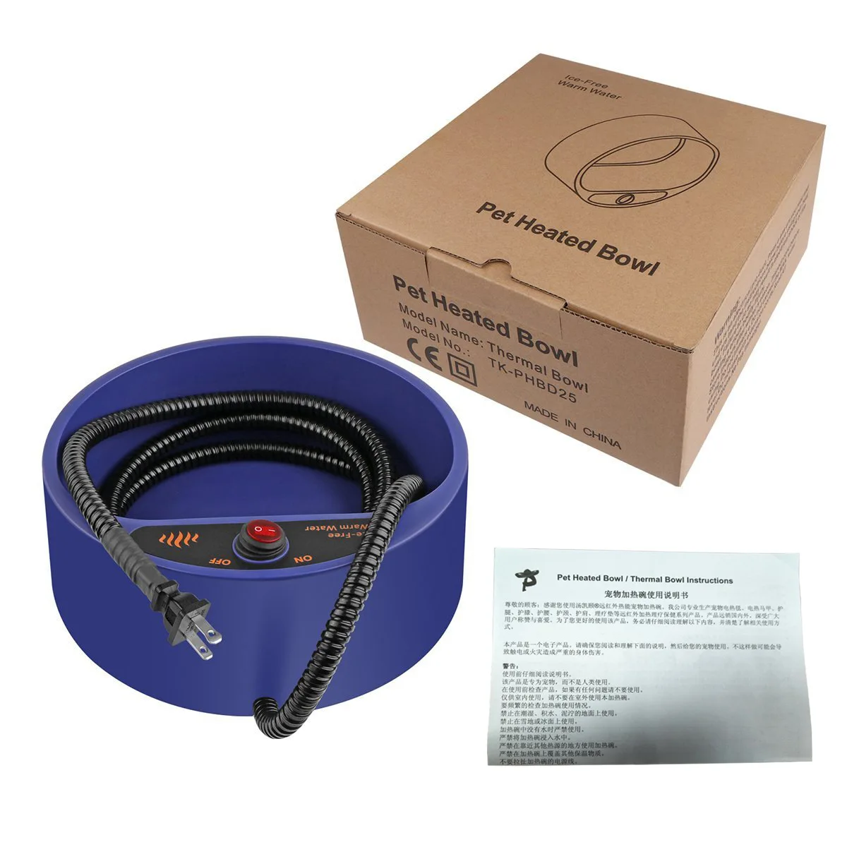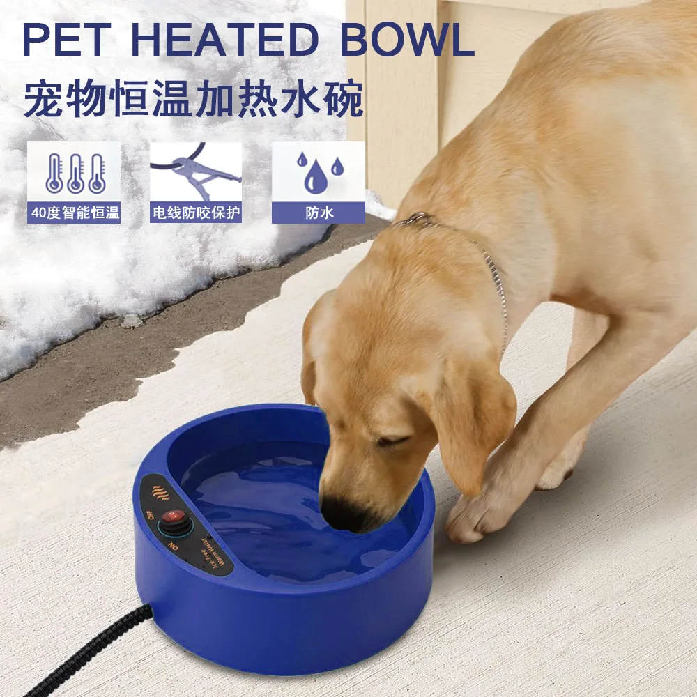 Cuenco de agua calentado para perros para exteriores, cuenco de agua sin congelación, calentador de agua para mascotas con cable resistente a masticar, cuenco eléctrico de 2,2 L de 35w