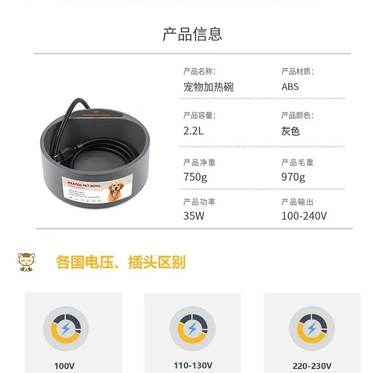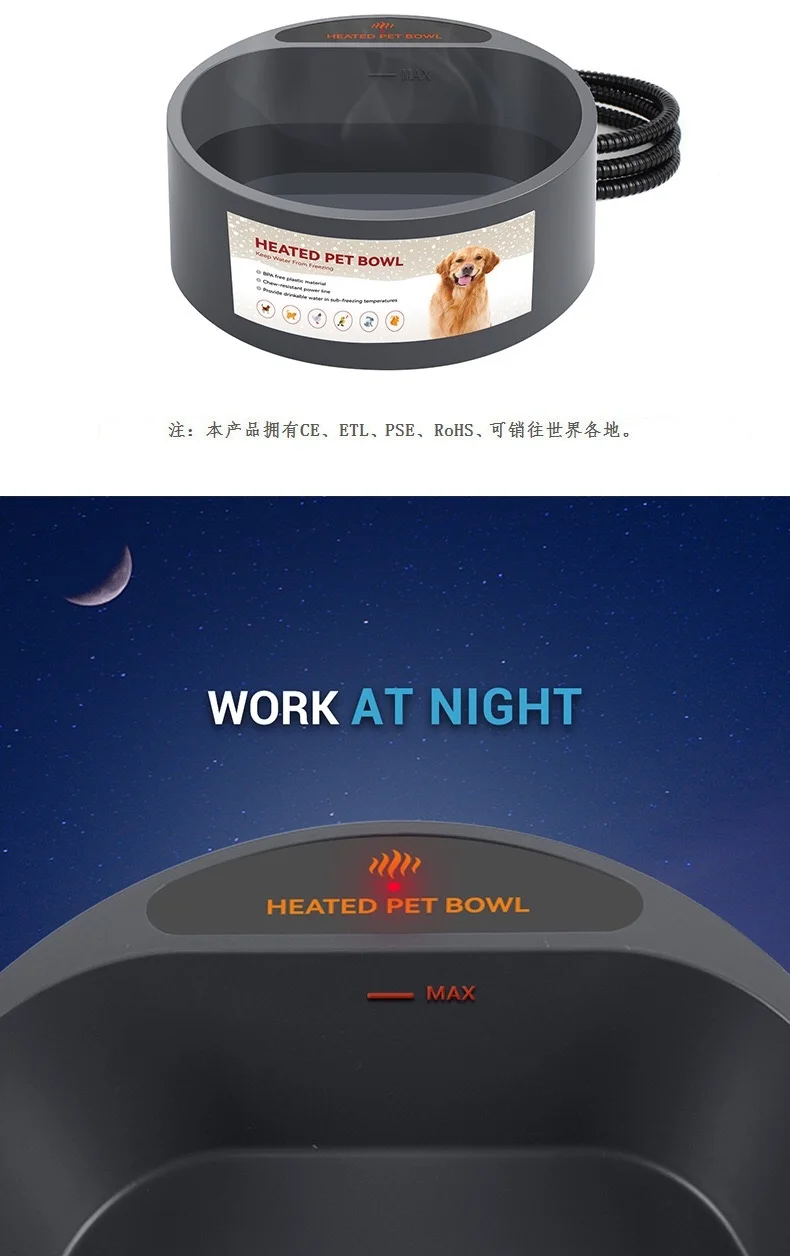Cuenco de agua caliente para perros, calentador de agua para mascotas con cable resistente a la masticación, cuenco eléctrico de 2,2 L, 35w, para exteriores