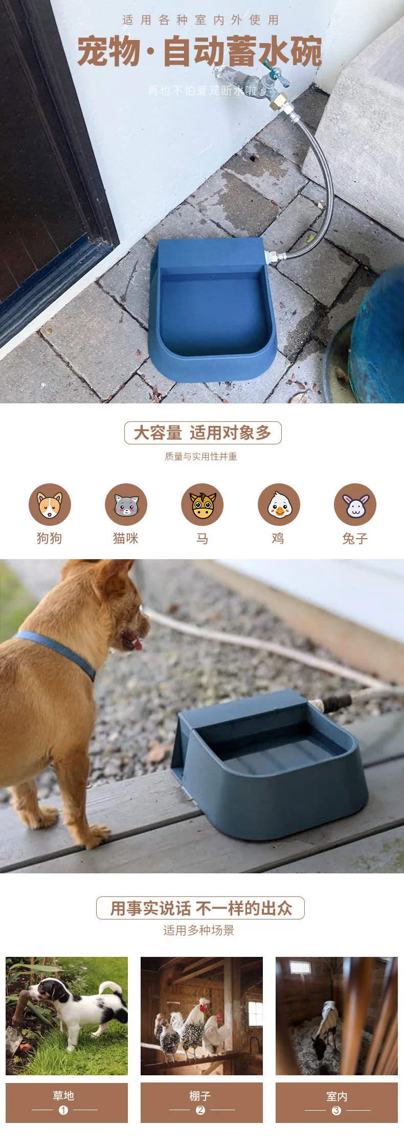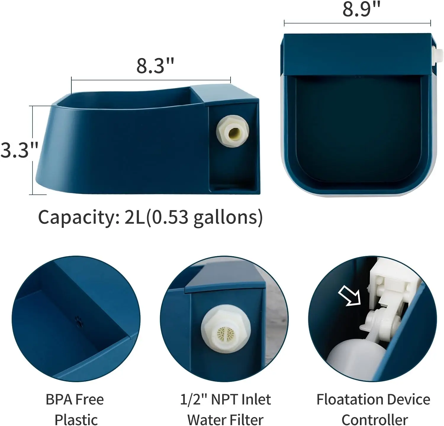 Cuenco de agua de llenado automático, dispensador automático de agua para perros de 2L, válvula de flotador de agua para ganado interior y exterior, alimentador de agua para gato y pollo