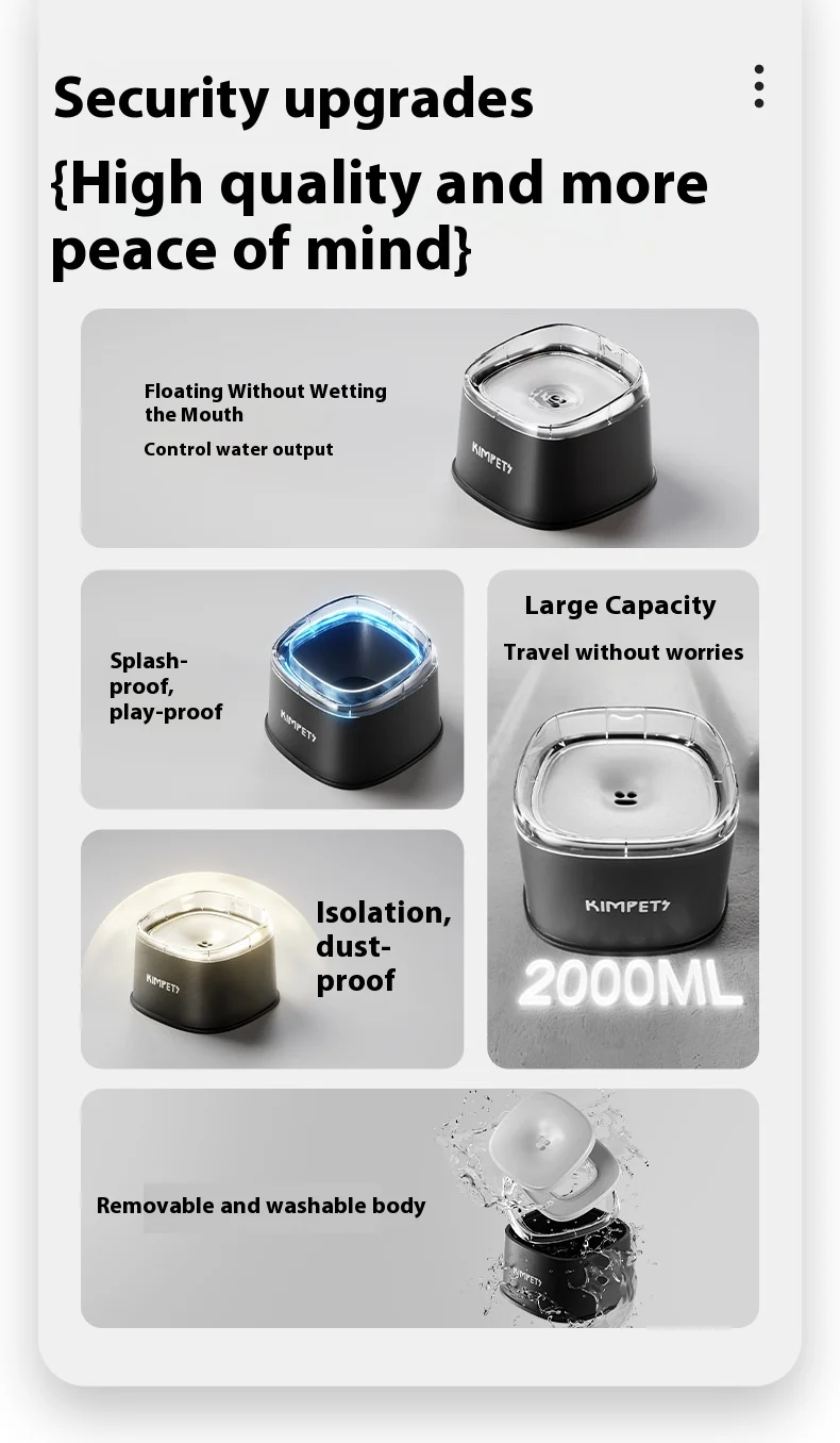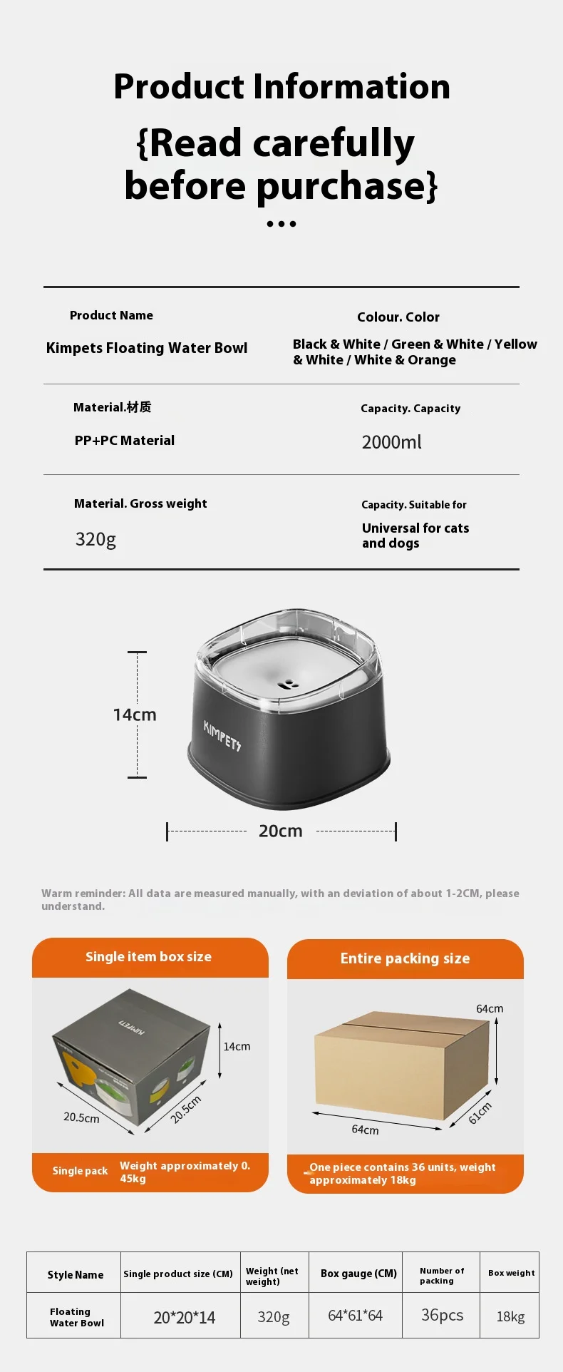 Cuenco de agua para mascotas sin derrames de 2000 ml: diseño flotante que mantiene la barbilla seca, antisalpicaduras y a prueba de polvo para gatos y perros