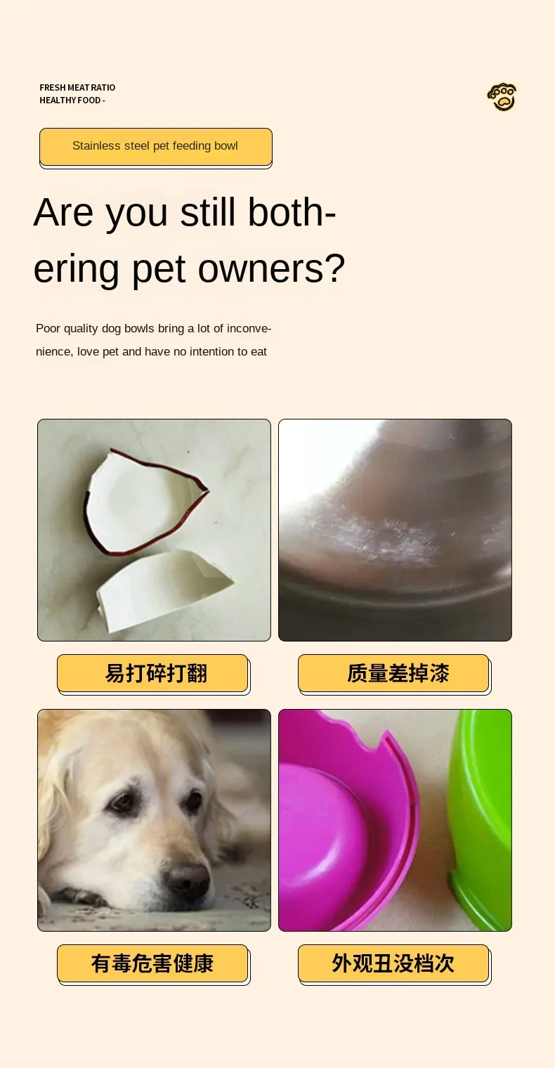 Cuenco de alimentación de acero inoxidable para perros y gatos, bebedero de Metal, duradero y fácil de limpiar