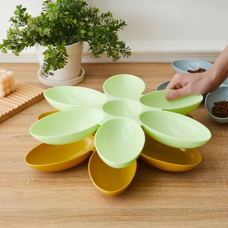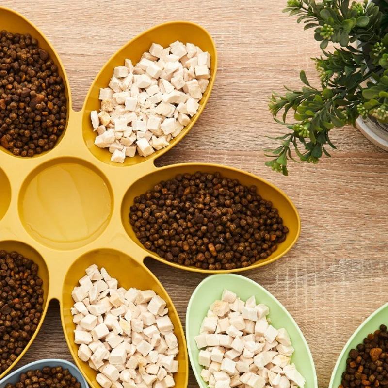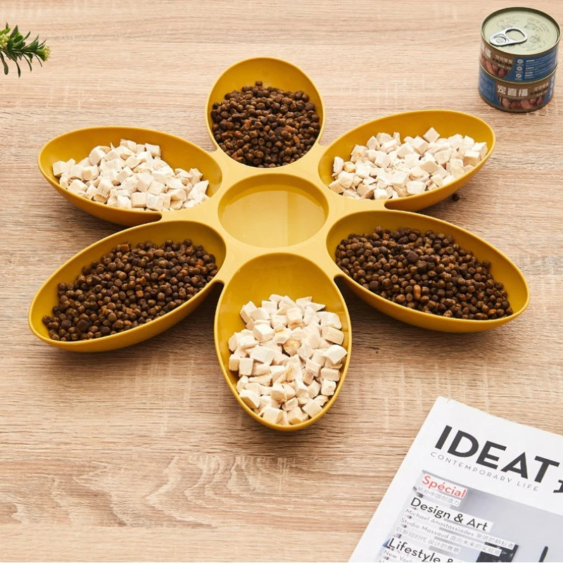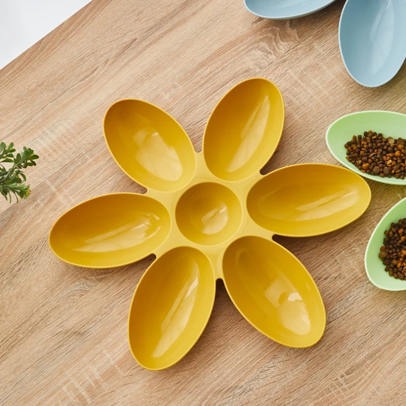 este innovadorCuenco para mascotas con forma de 6 pétalospermite que hasta seis gatos o perros coman o beban simultáneamente sin competencia.Hecho de plástico PP no tóxico y ecológico, presenta un diseño poco profundo y redondeado que protege la boca de las mascotas y evita la asfixia.El tamaño compacto (42 cm de diámetro) ahorra espacio y al mismo tiempo es lo suficientemente grande para hogares con varias mascotas.Cada sección es fácil de limpiar y perfecta para alimentos, agua o leche.