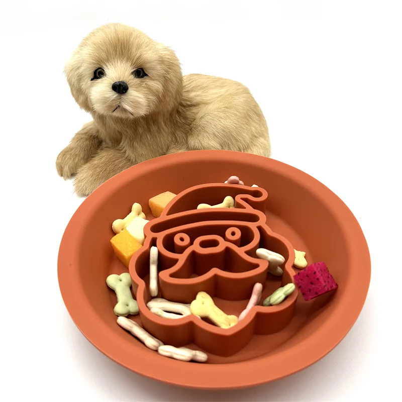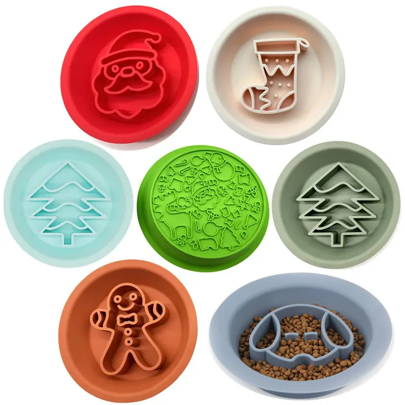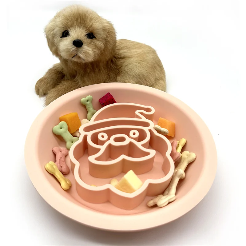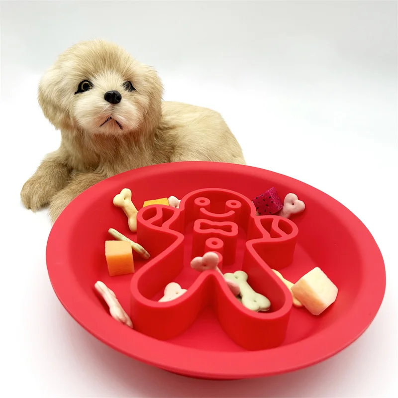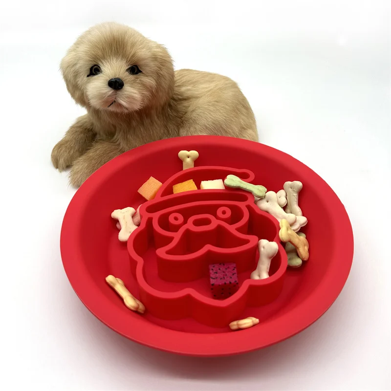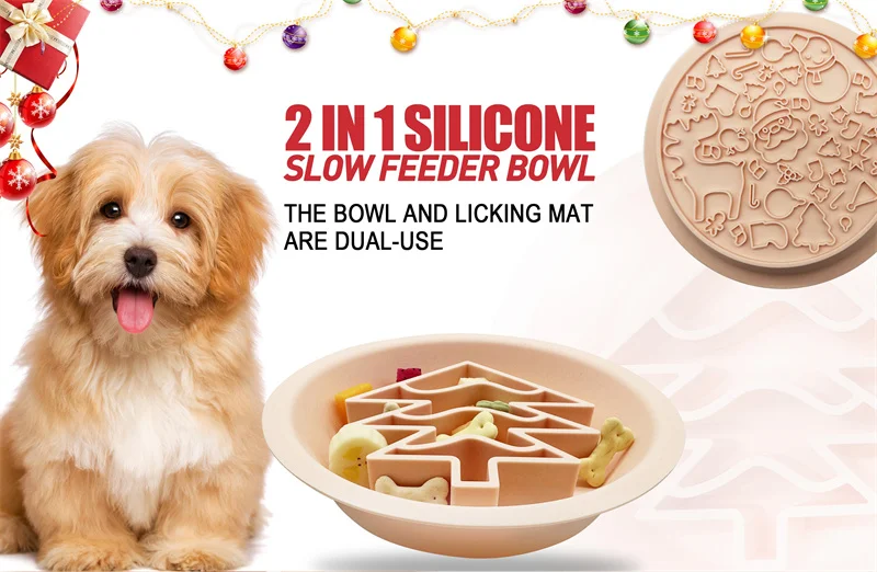 Cuenco de alimentación lenta de silicona para mascotas, almohadilla de doble uso para lamer, cuenco de salud para perros y gatos, colección navideña, 2 en 1