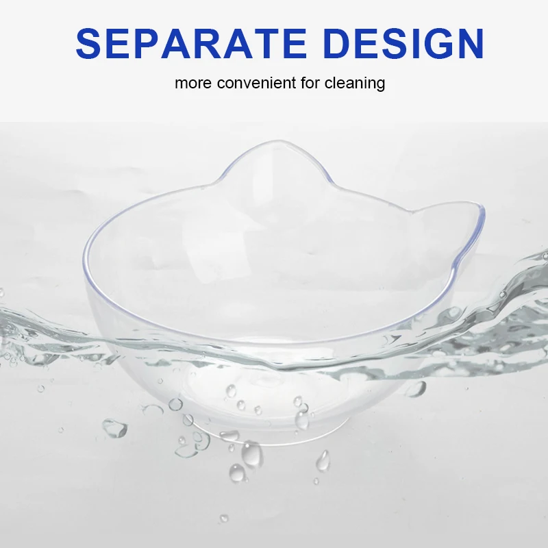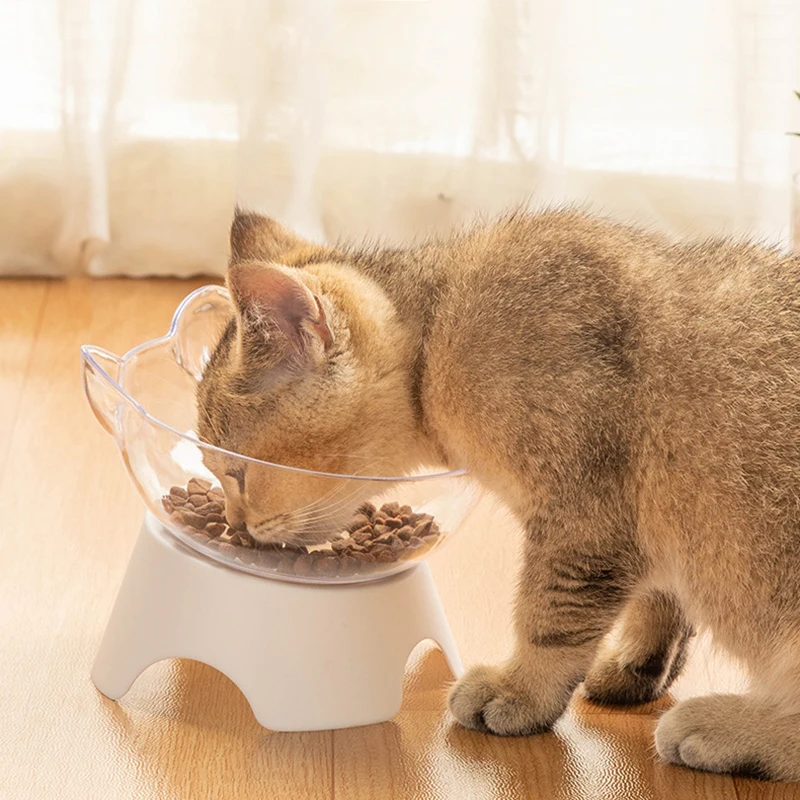 Cuenco de alimentación de plástico transparente para gatos, alimentador de agua y comida para mascotas, soporte elevado, Boca de inclinación, suministros para gatitos