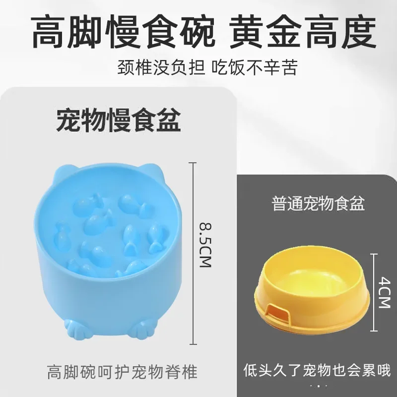 Cuenco antiasfixia de pie alto para mascotas, cuenco para gatos, protección para el cuello, cuenco de comida para gatos, arco de arroz, comida lenta, cuenco antiasfixia para mascotas