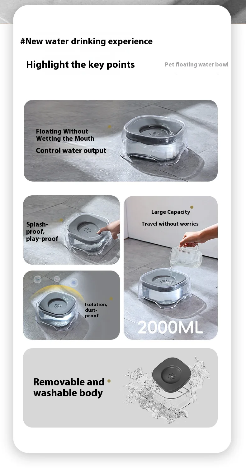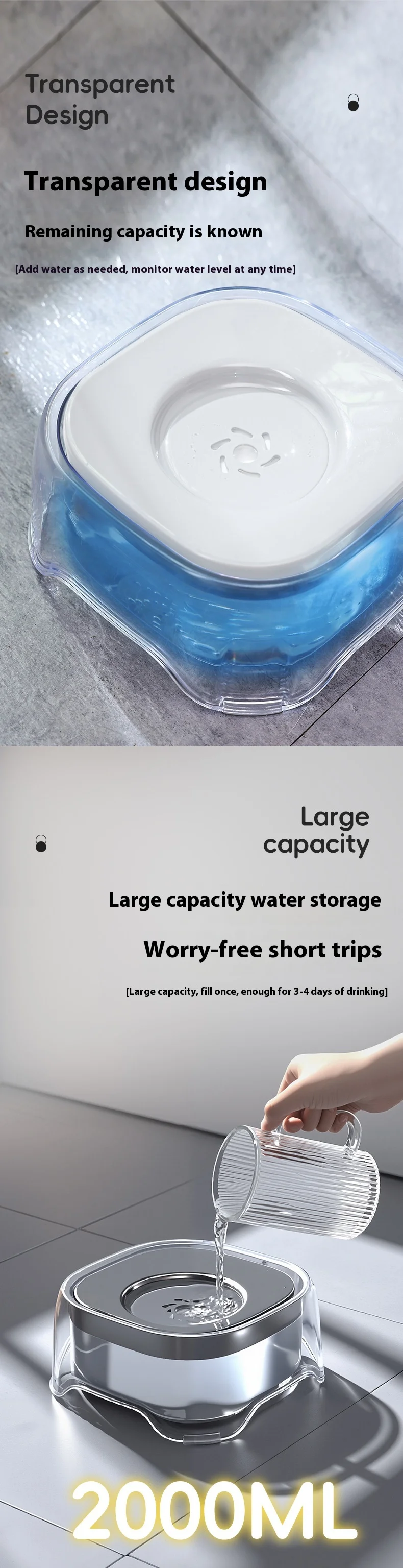 Cuenco antiderrames para perros y gatos de 2L con filtro de agua: diseño flotante con vista clara, mantiene el agua limpia y la barbilla seca de los mascotas