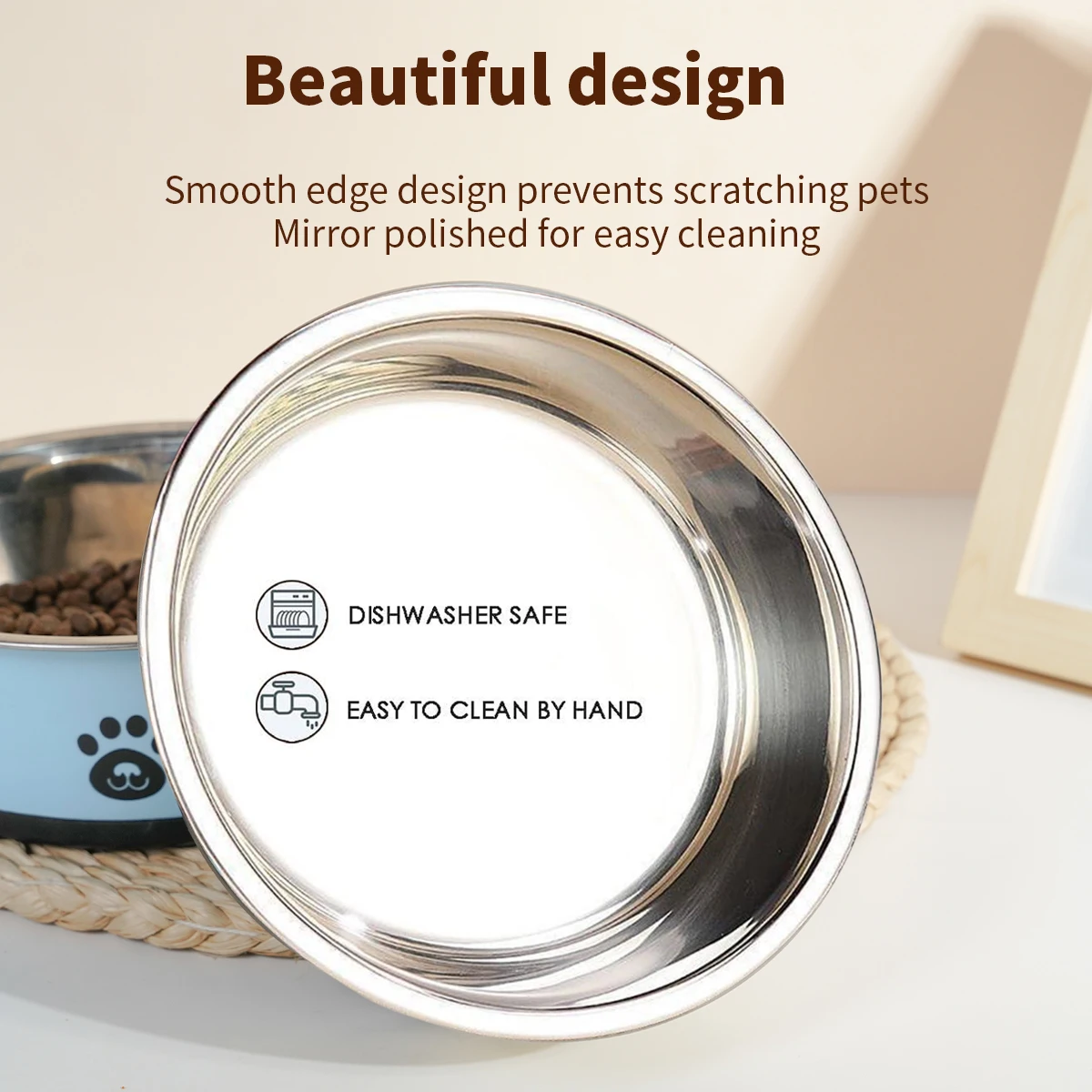 【Material】El cuenco para perros está hecho de acero inoxidable de alta calidad, seguro y fácil de limpiar. En comparación con el plástico, es más duradero, anticaída y protege perfectamente la dieta del animal. Nuestros productos han pasado una calidad estricta